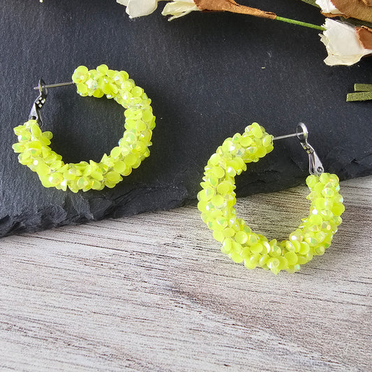 Neon Yellow Super Chunky Glitter Hoops (2 sizes)