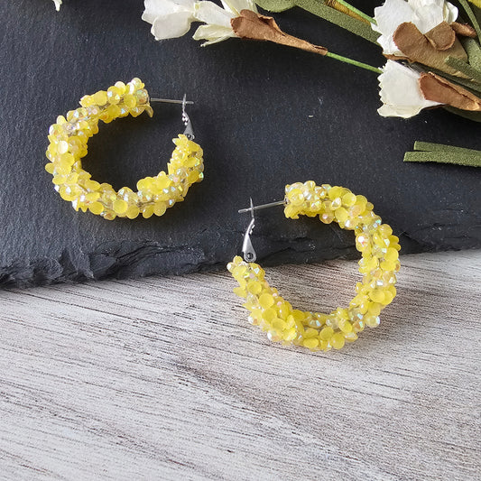 Yellow Super Chunky Glitter Hoops (2 sizes)
