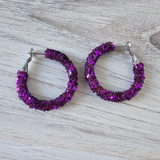 Lavender Super Chunky Glitter Hoops (2 sizes)