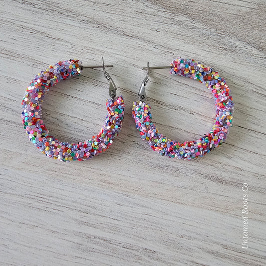 Midnight Super Chunky Glitter Hoops (2 sizes)