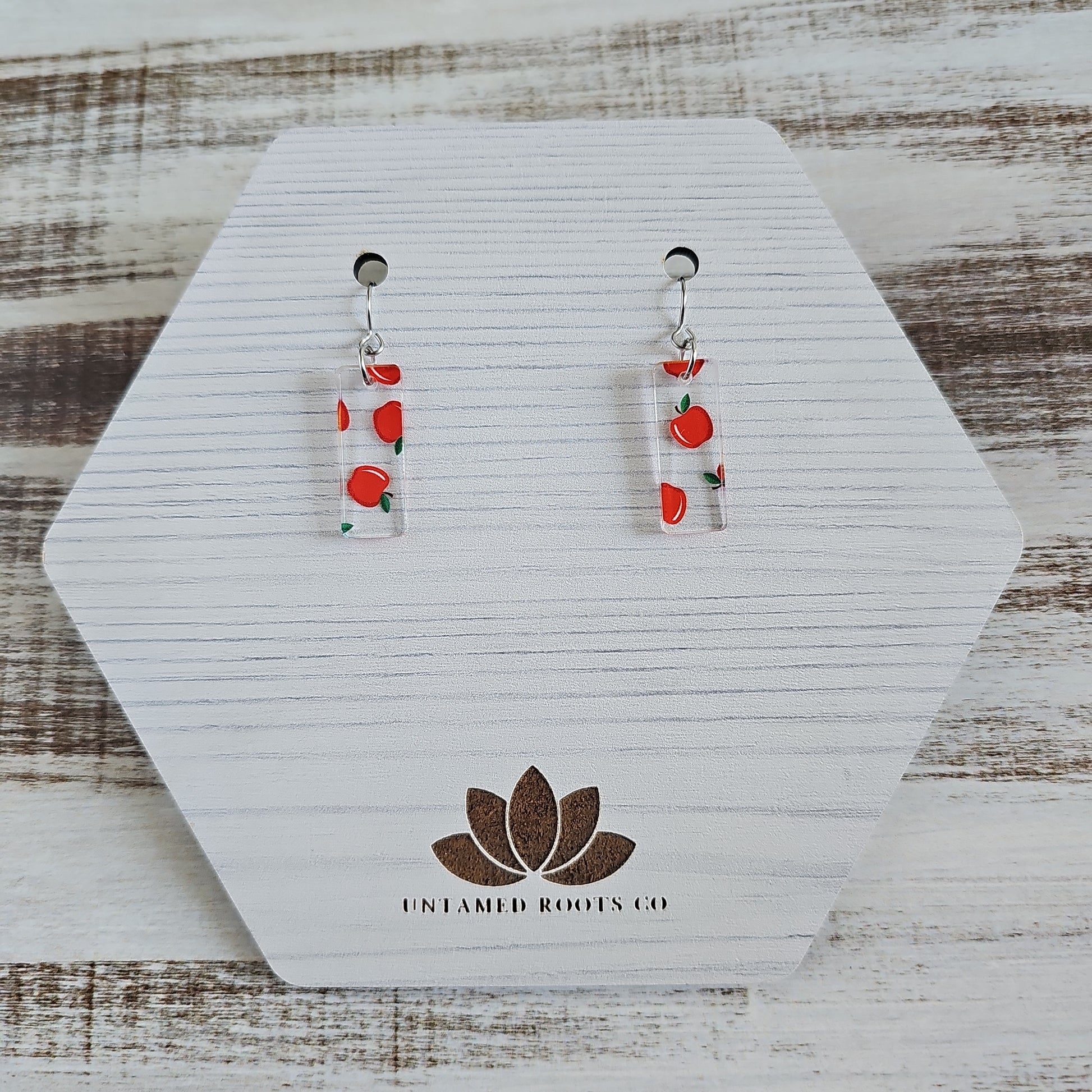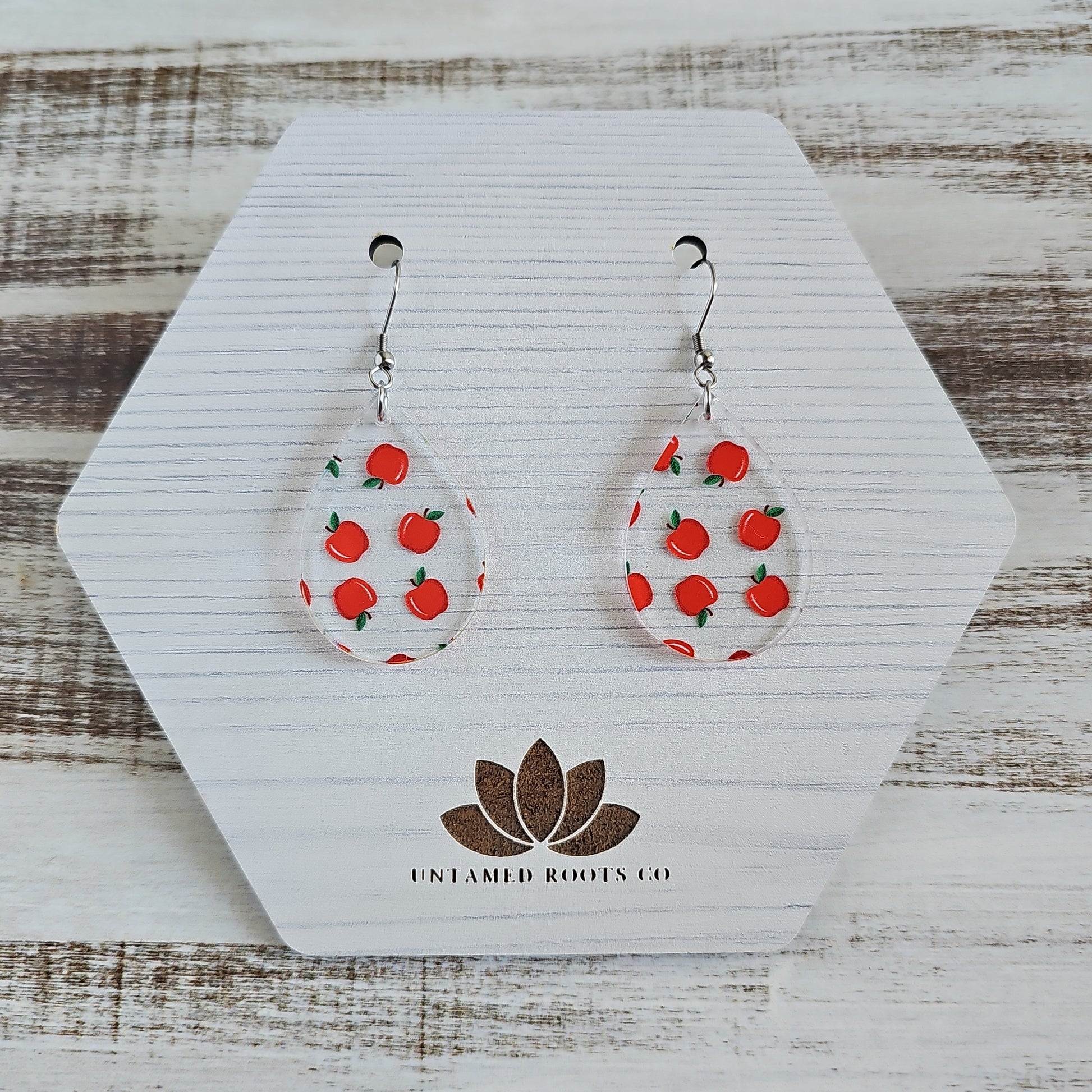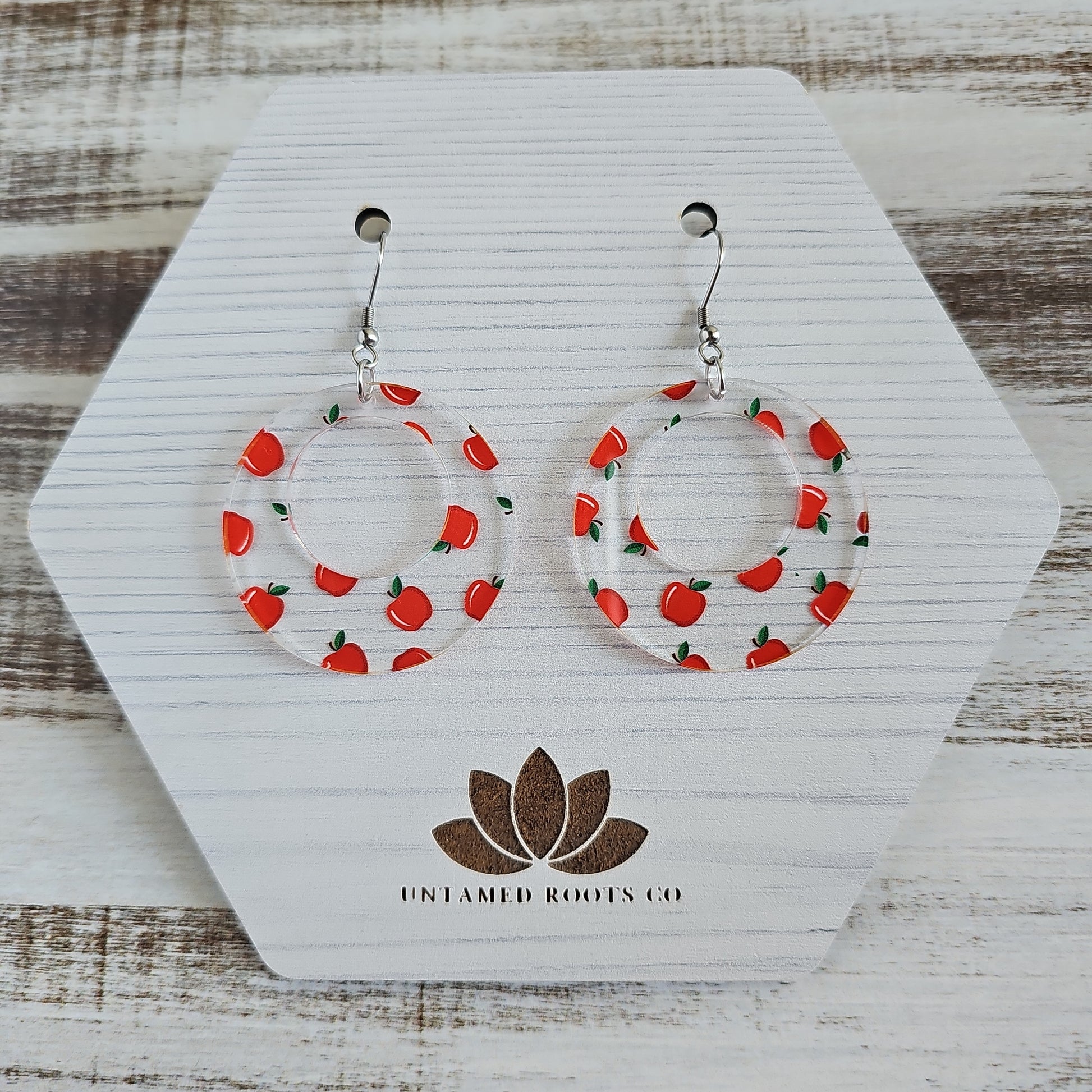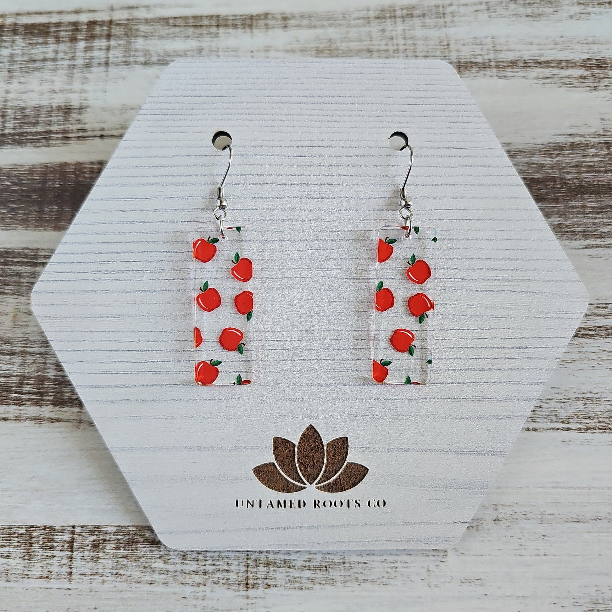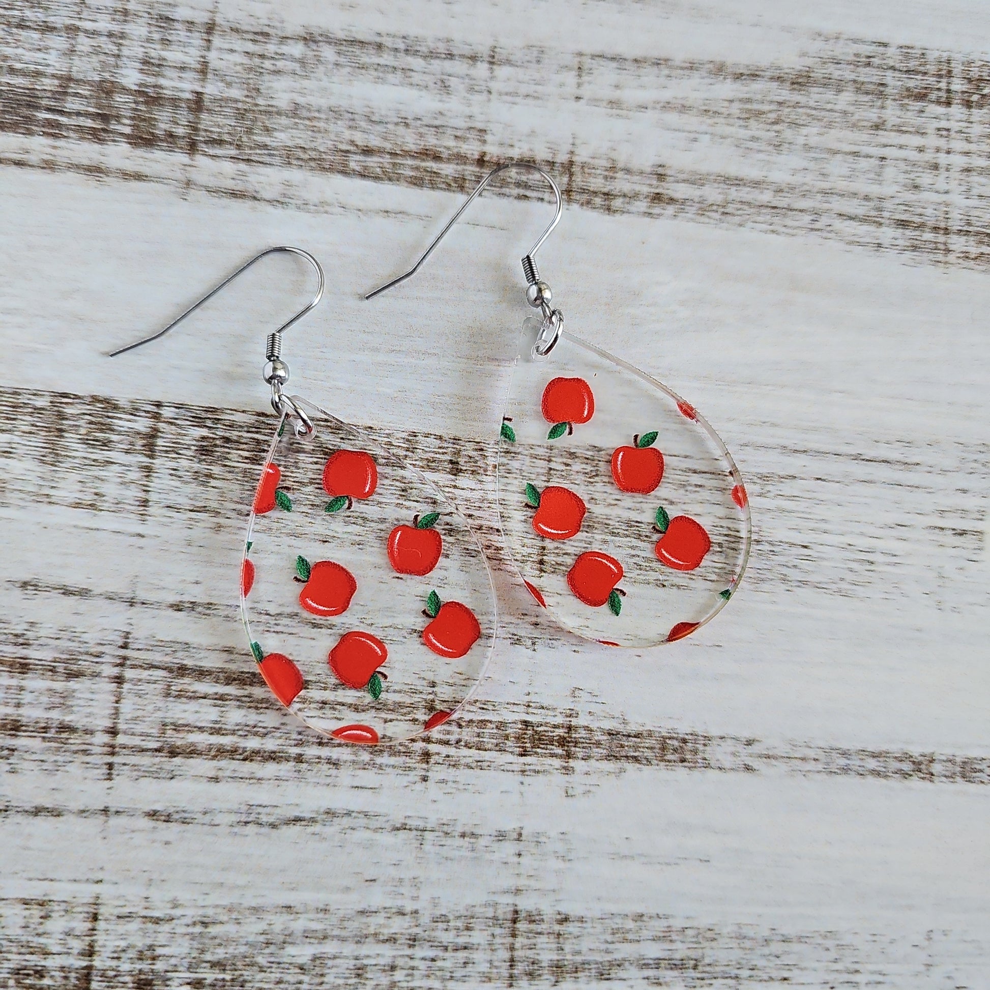 These adorable earrings come in 8 fun styles, letting you show off your unique style! Our cutest accessory yet, these clear acrylic earrings are printed with an apple pattern for some extra sweetness. Perfect for fall apple picking and teachers alike, these earrings are sure to draw admiring glances!