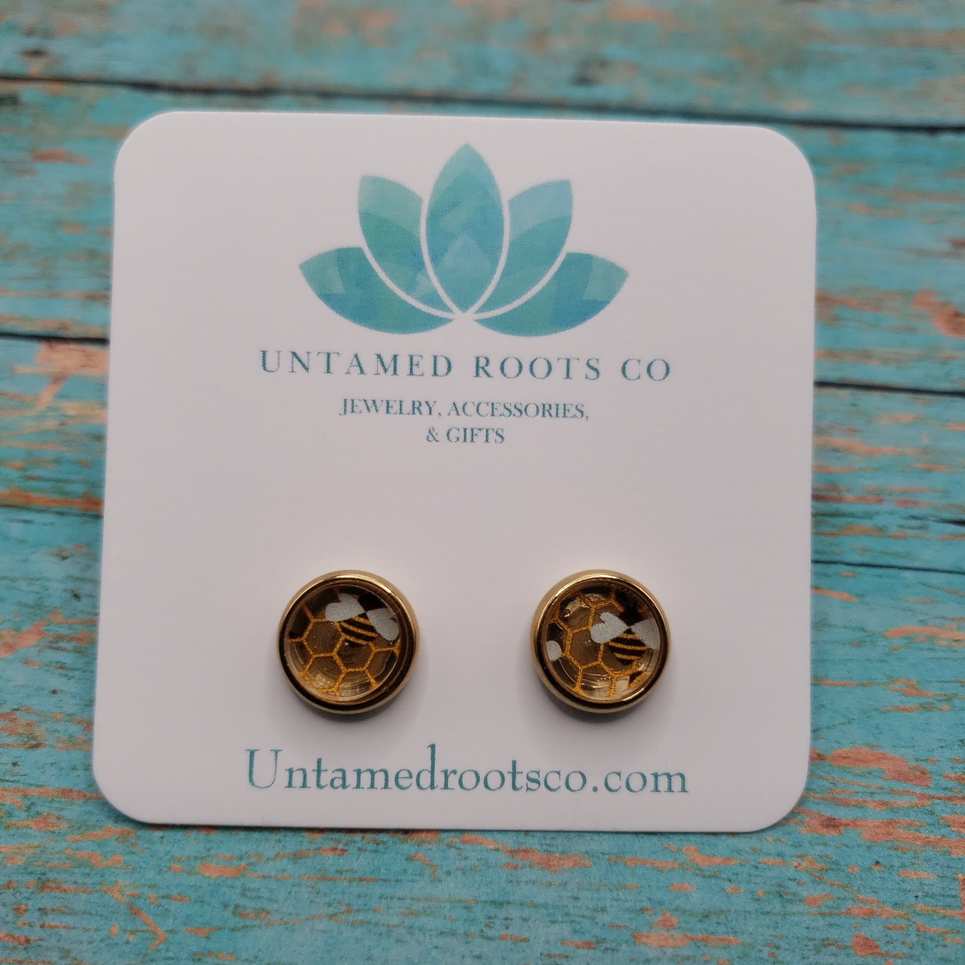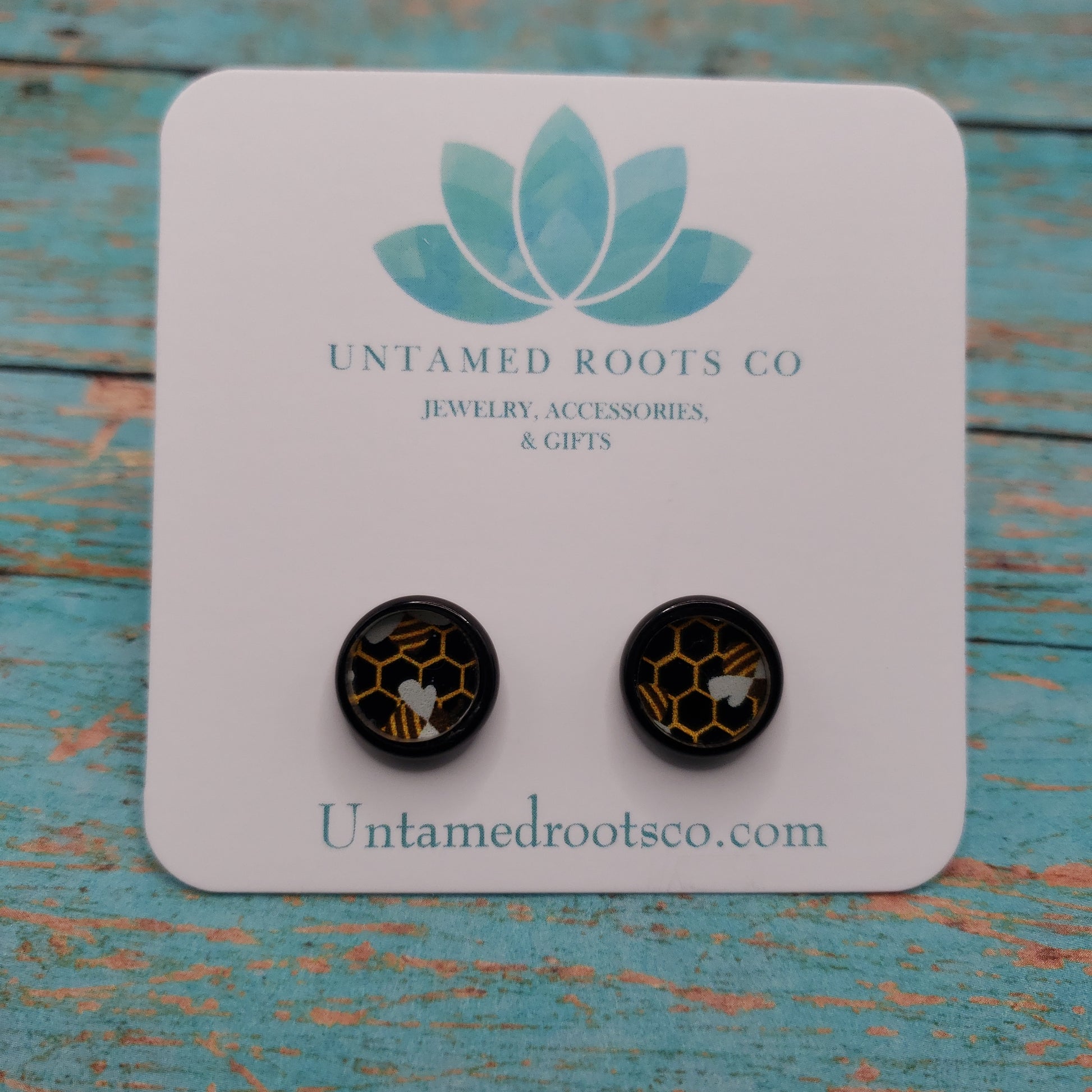 PLEASE NOTE: EACH PAIR OF EARRINGS IS DIFFERENT! Your pair will be the same bee print, but these photos are just a representation of what you may receive!