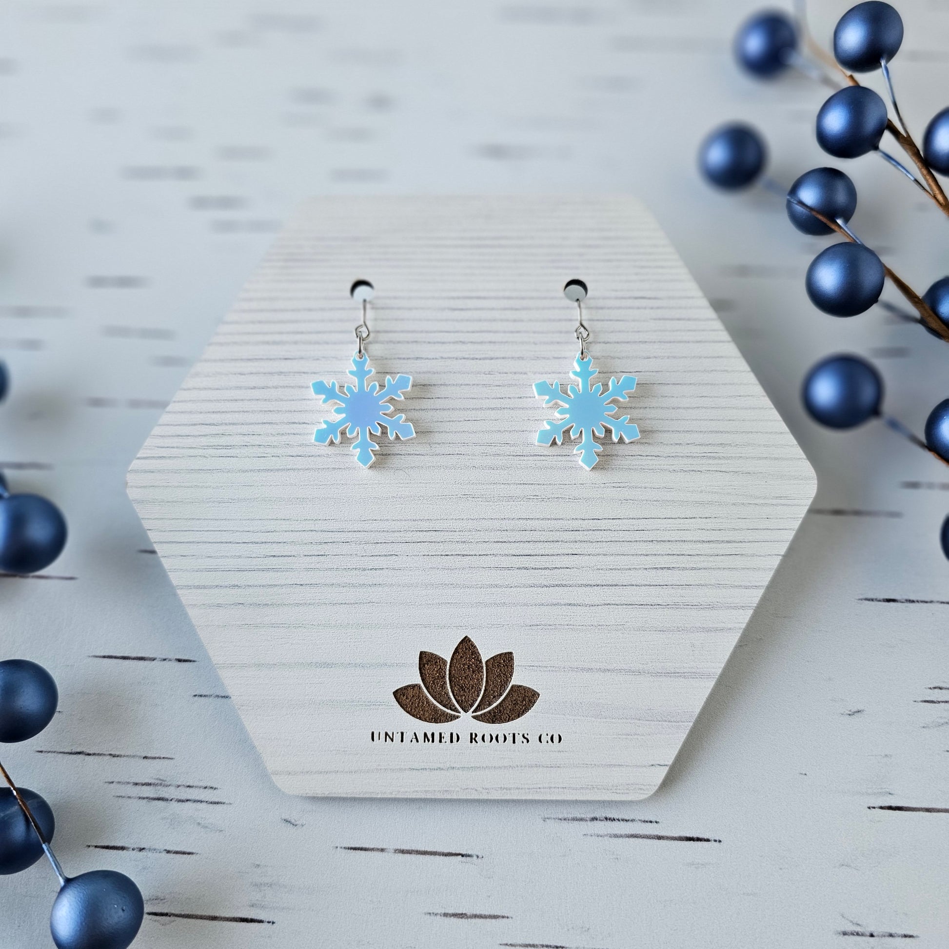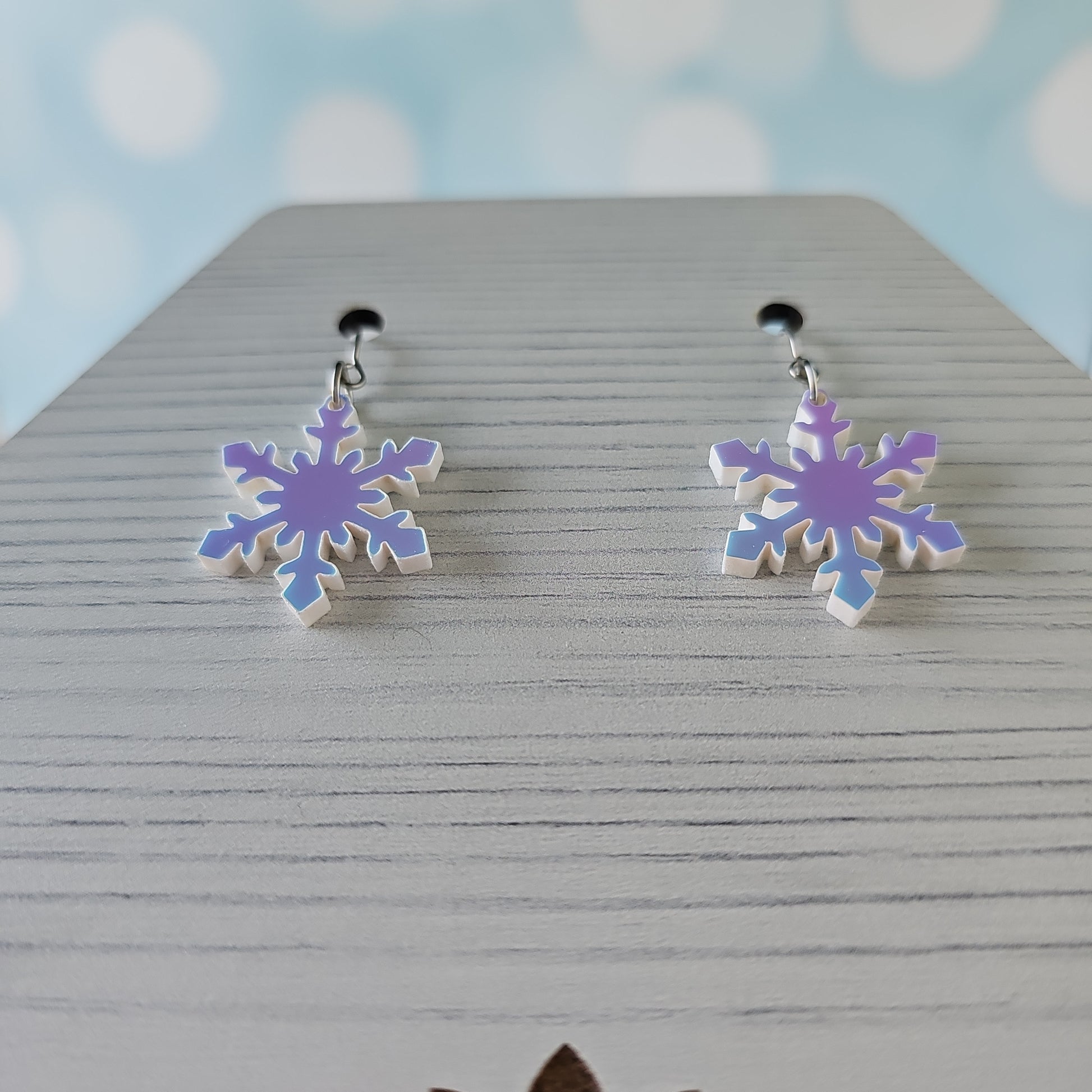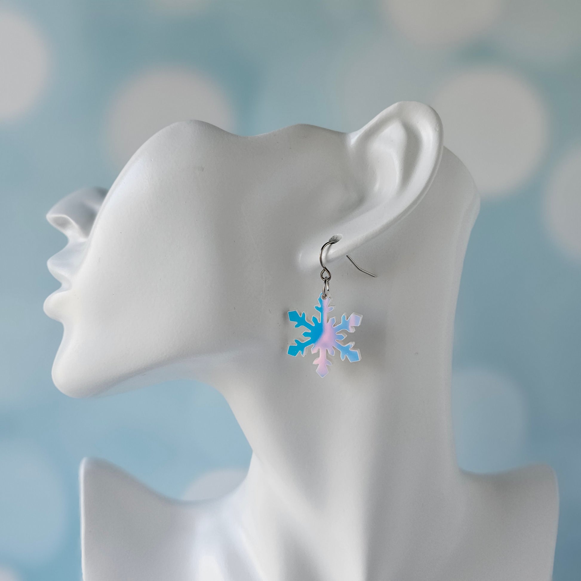 Blue Iridescent Snowflake Earrings