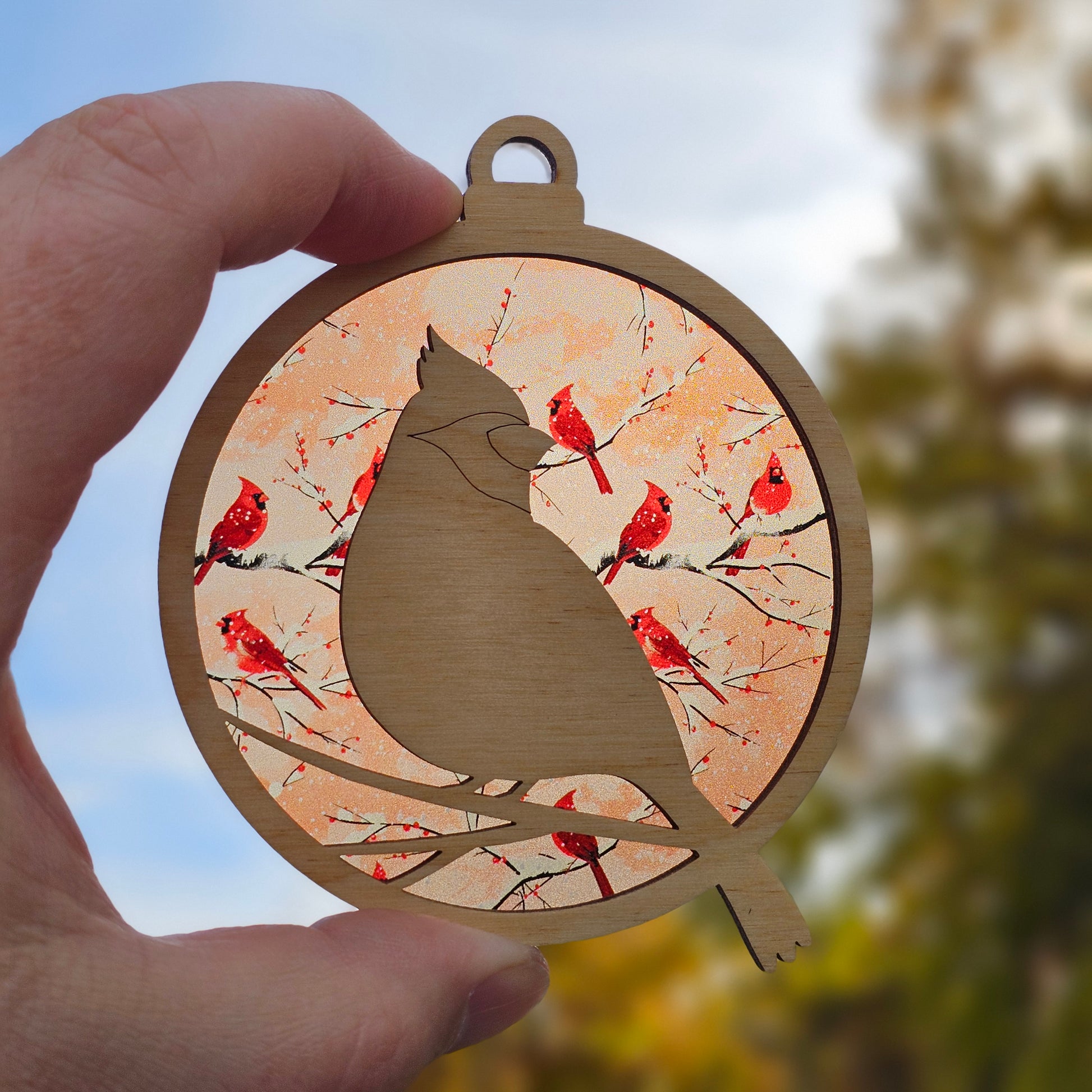 -Translucent backer passes light for this beautiful dual-purpose ornament/suncatcher! Placed in front of a light on a Christmas tree, this ornament comes to life, or you can place it in a window for year-round enjoyment!