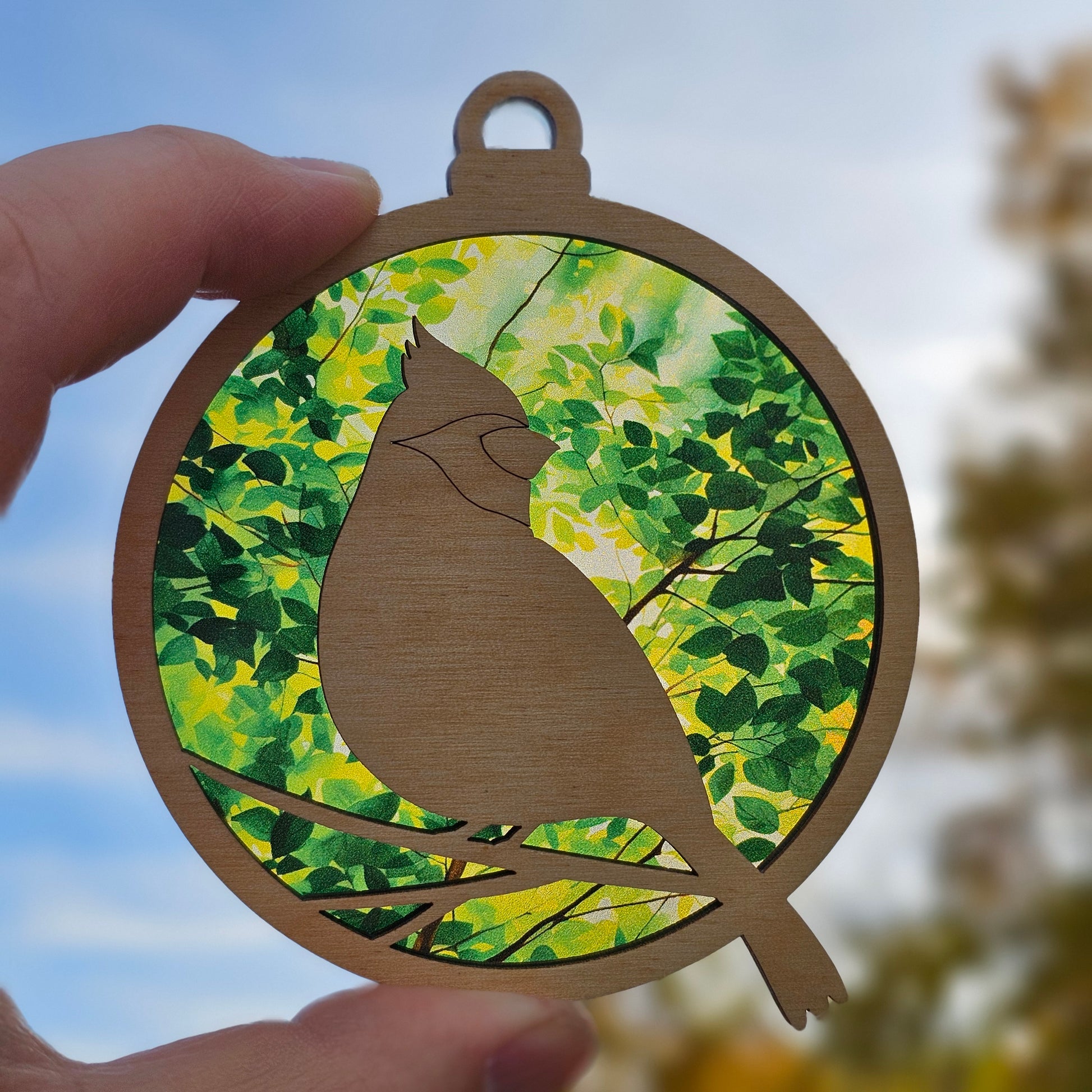 -Translucent backer passes light for this beautiful dual-purpose ornament/suncatcher! Placed in front of a light on a Christmas tree, this ornament comes to life, or you can place it in a window for year-round enjoyment!