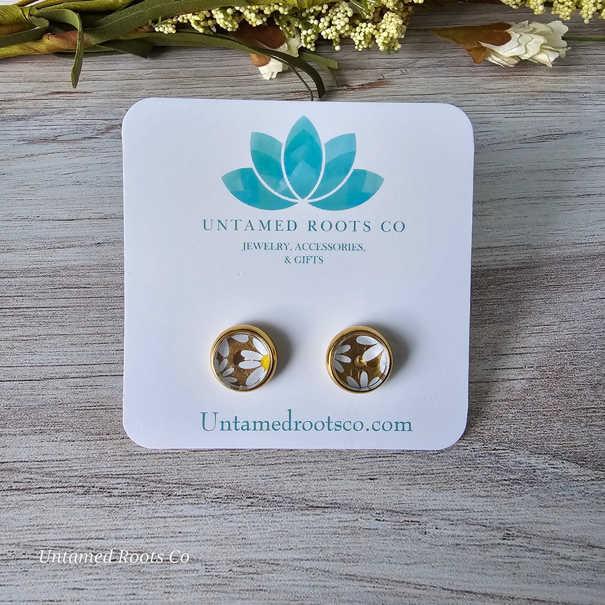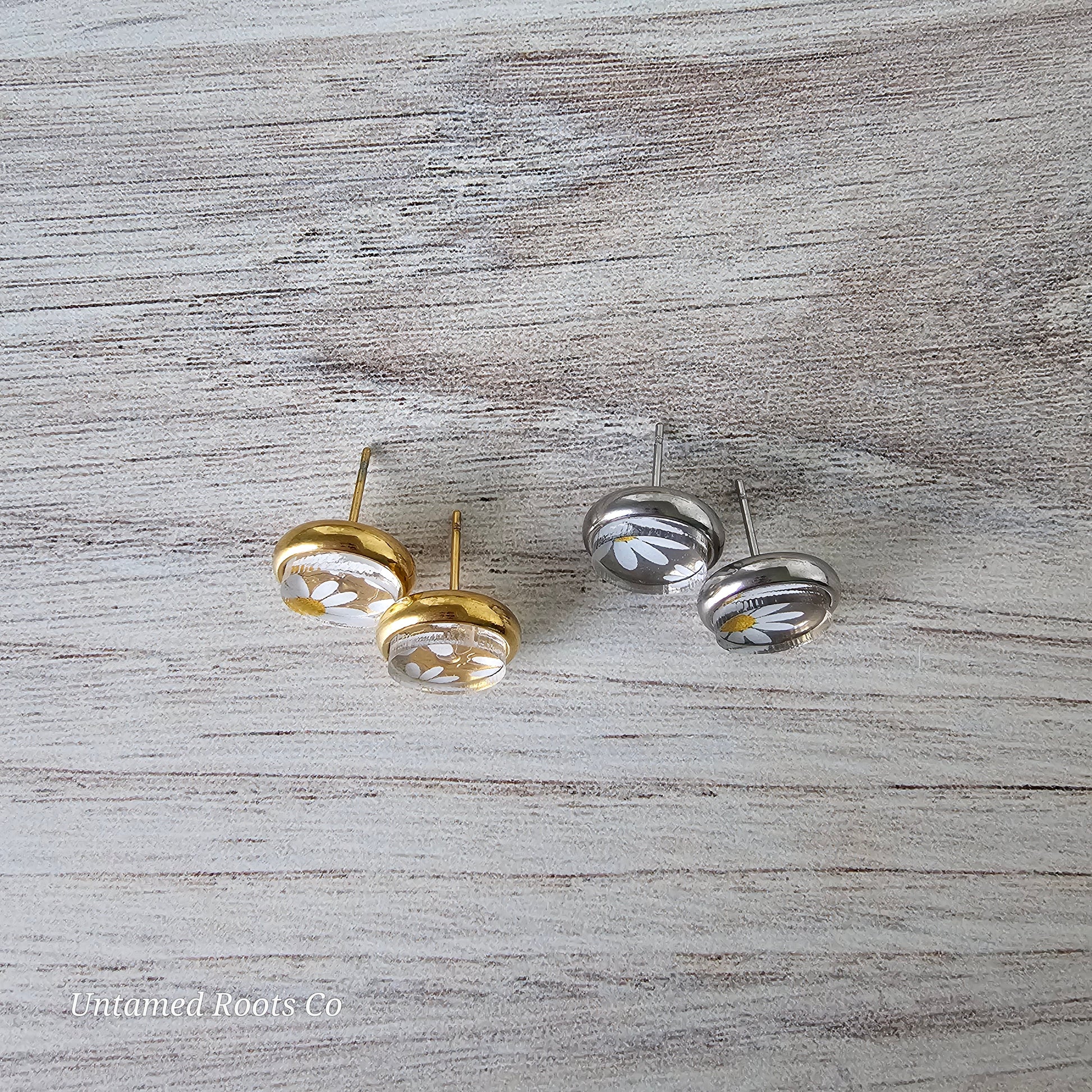 Daisy Print inside stainless steel bezel stud earrings.