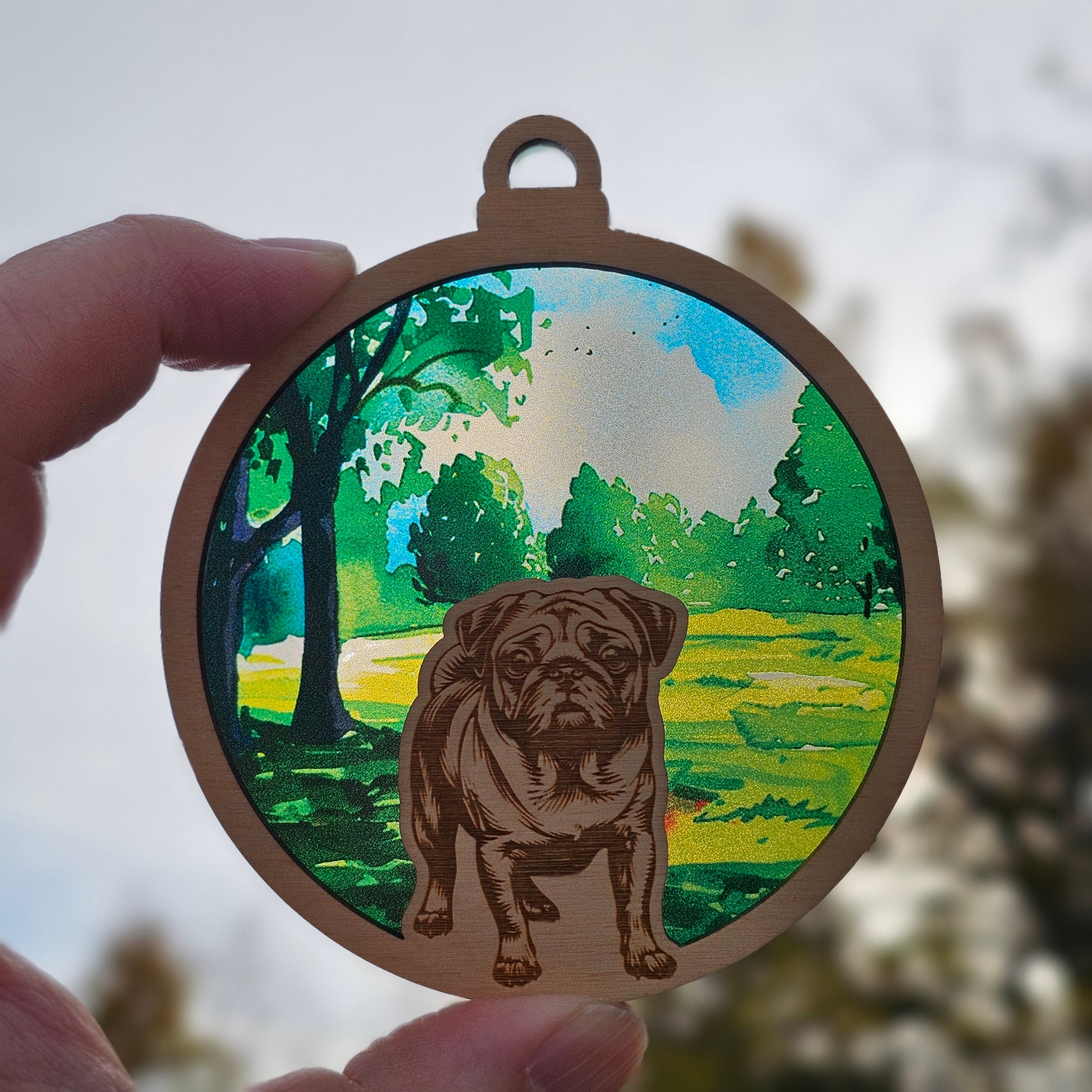 -Translucent backer passes light for this beautiful dual-purpose ornament/suncatcher! Placed in front of a light on a Christmas tree, this ornament comes to life, or you can place it in a window for year-round enjoyment!