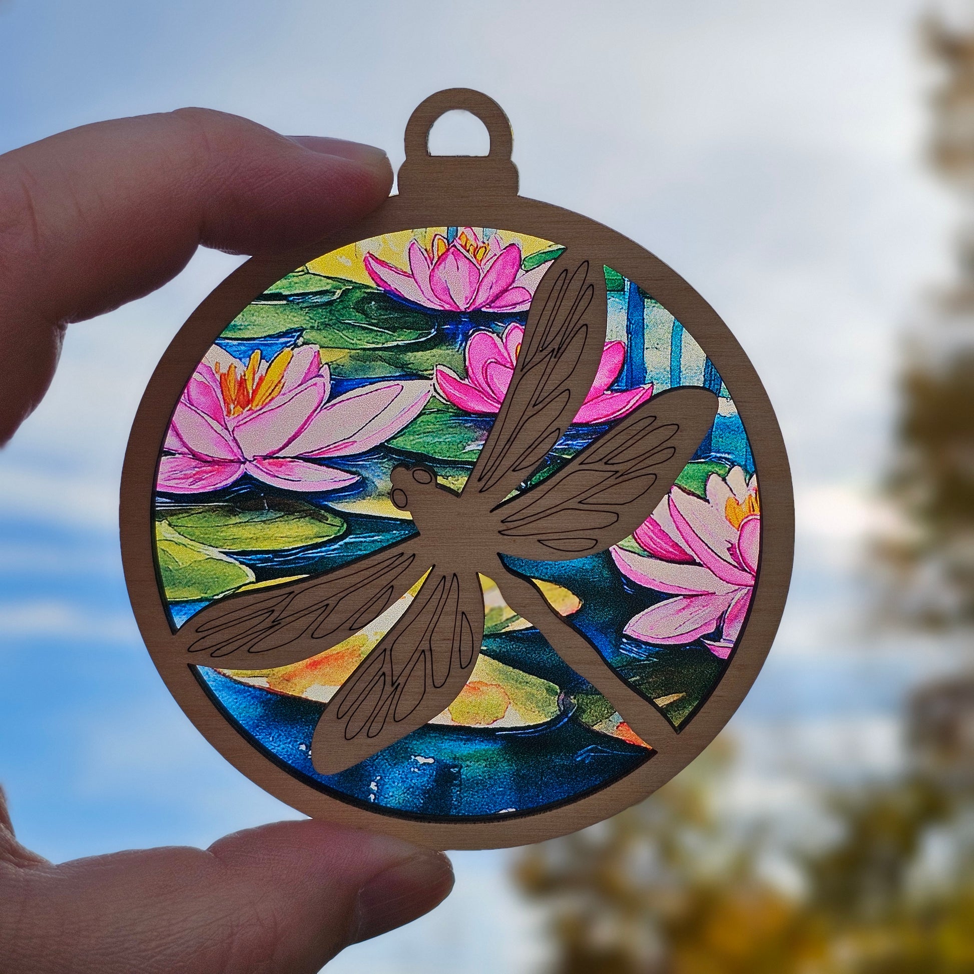 -Translucent backer passes light for this beautiful dual-purpose ornament/suncatcher! Placed in front of a light on a Christmas tree, this ornament comes to life, or you can place it in a window for year-round enjoyment!
