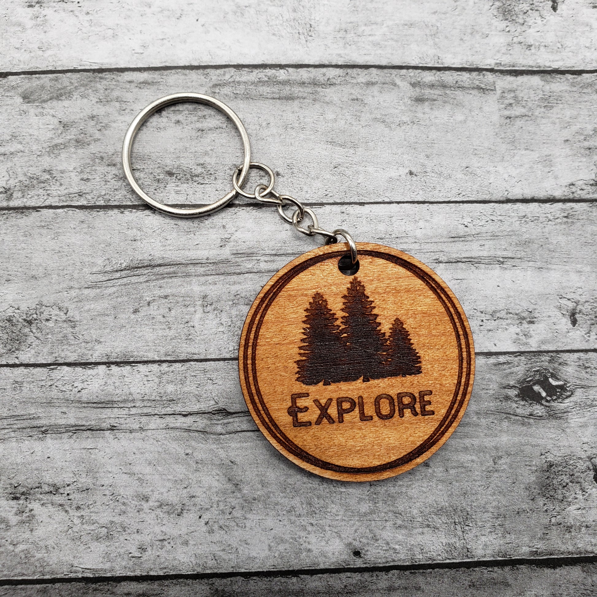 The Explore Keychain is a stylish and rustic accessory made from durable maple wood with a laser-engraved message to inspire adventurous spirits. Perfect for hikers and nature-lovers, this keychain serves as a reminder of the beauty of exploration.