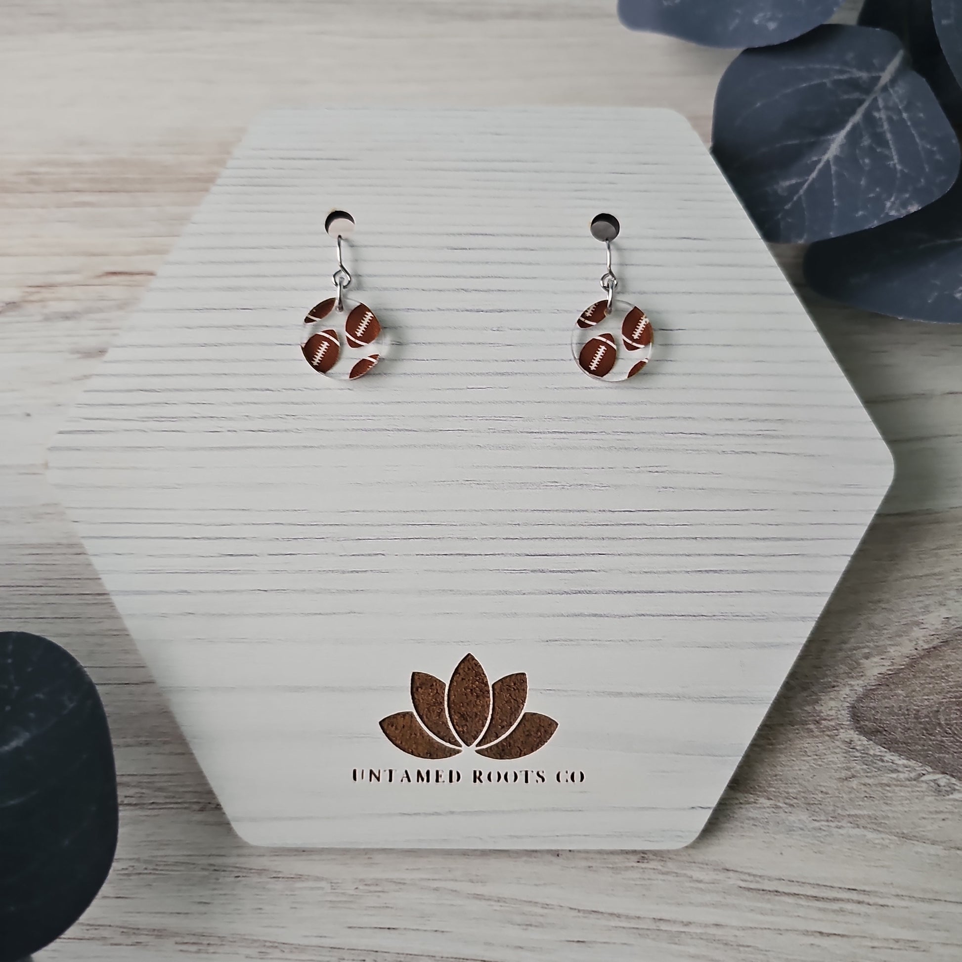 This is 1/8th acrylic so it is very lightweight! These also have hypoallergenic stainless steel earring wires and hardware, and come with silicone backers for extra security.