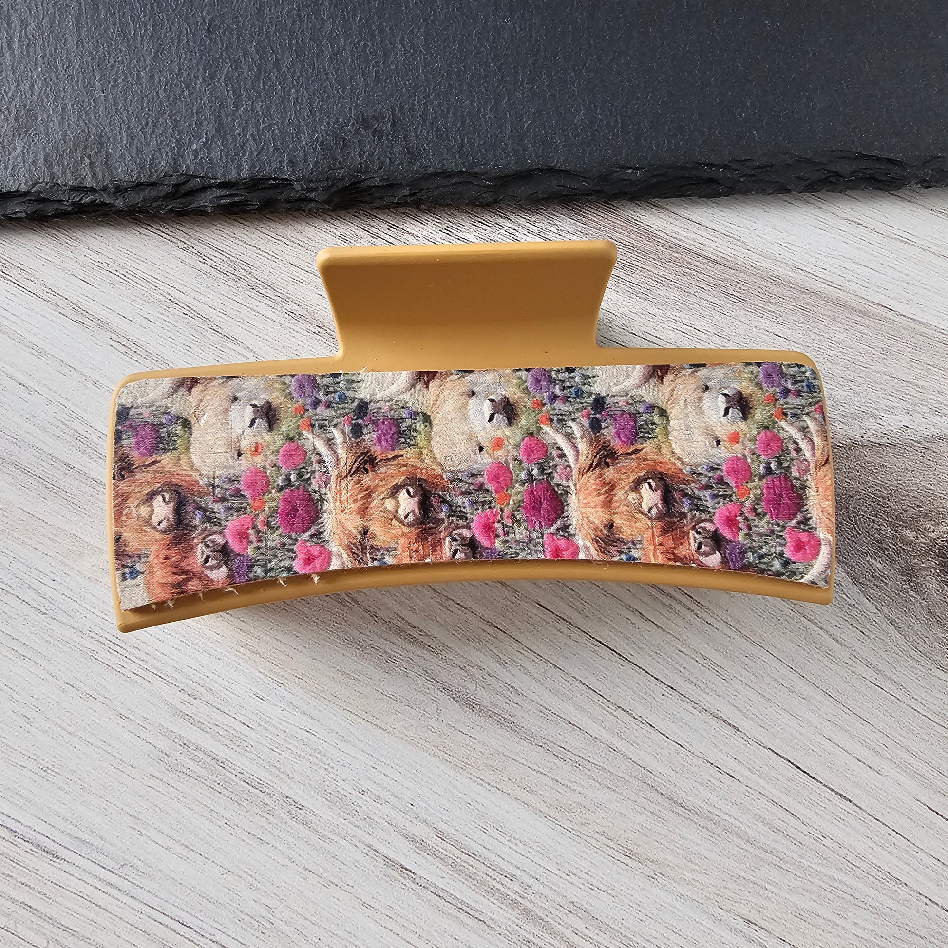 Made with printed cork on genuine leather, this limited edition clip is secured to a classic claw design. At 4.1 inches long, it's the perfect size for holding your hair in place while adding a touch of whimsy.