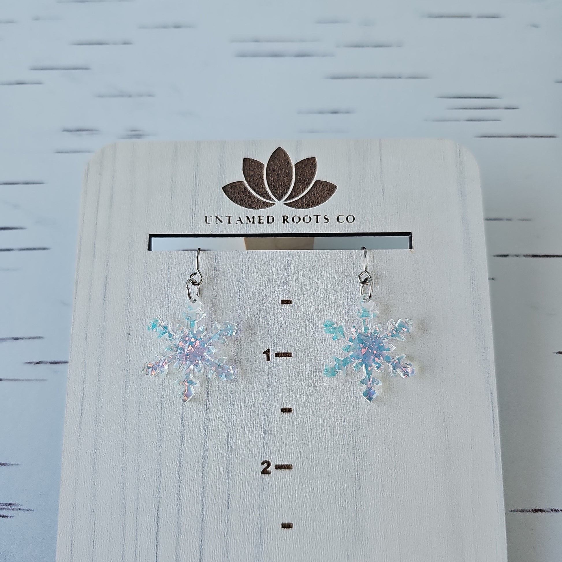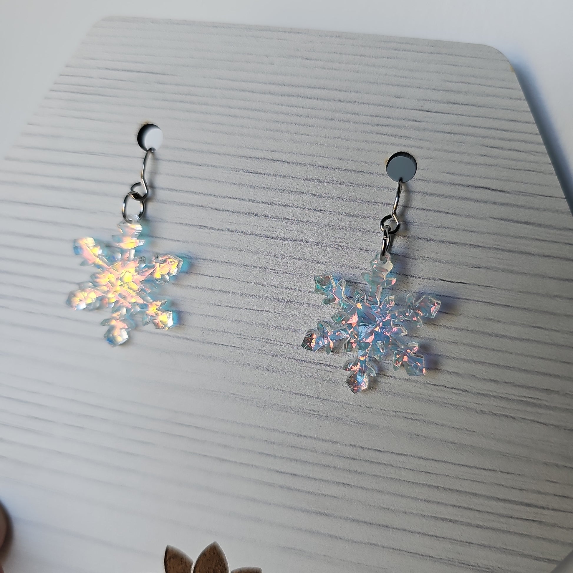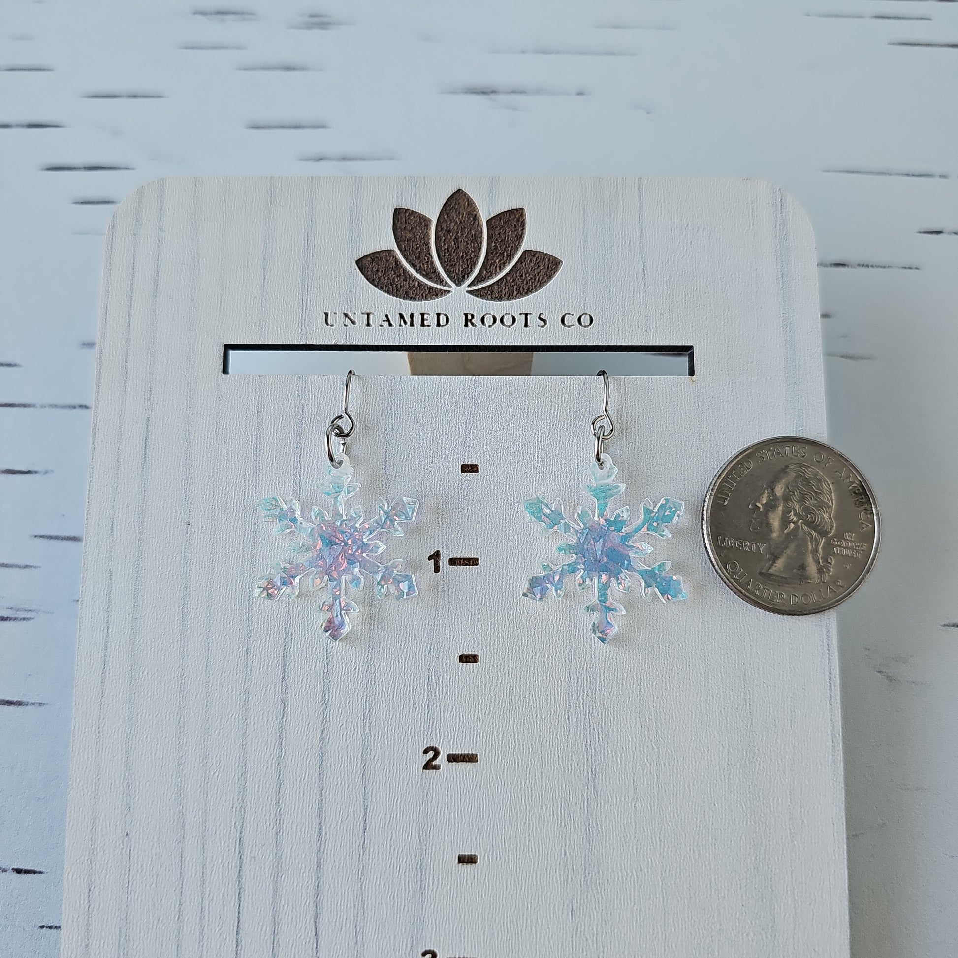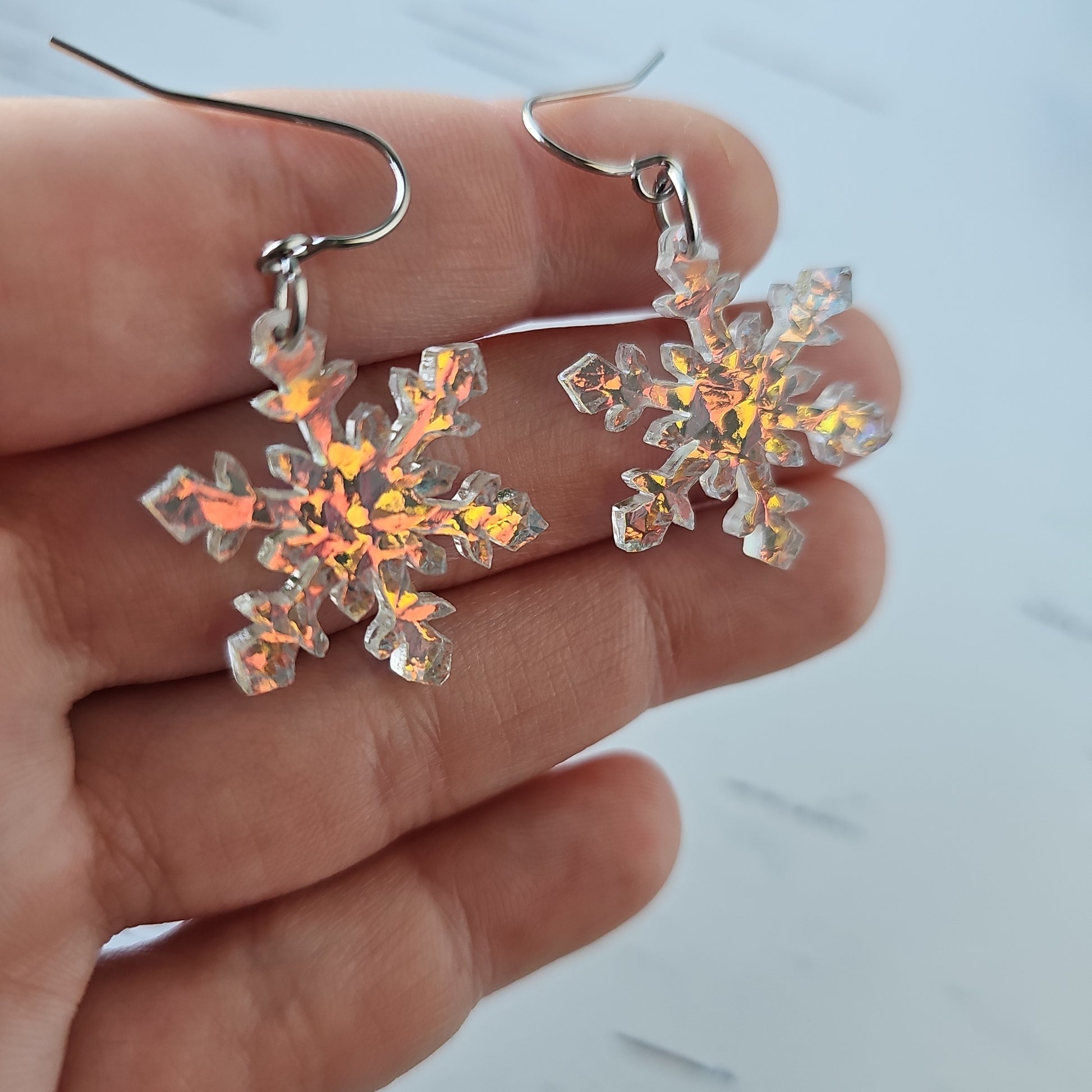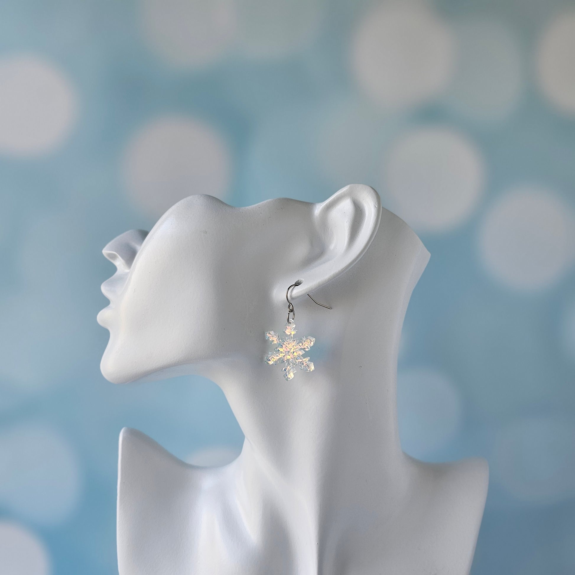 Experience the timeless artistry of these shimmering snowflake earrings. Crafted with elegant, crystal-textured snowflakes and a subtle iridescence, they're elevated by stainless steel hardware for an exquisitely luxurious finish.