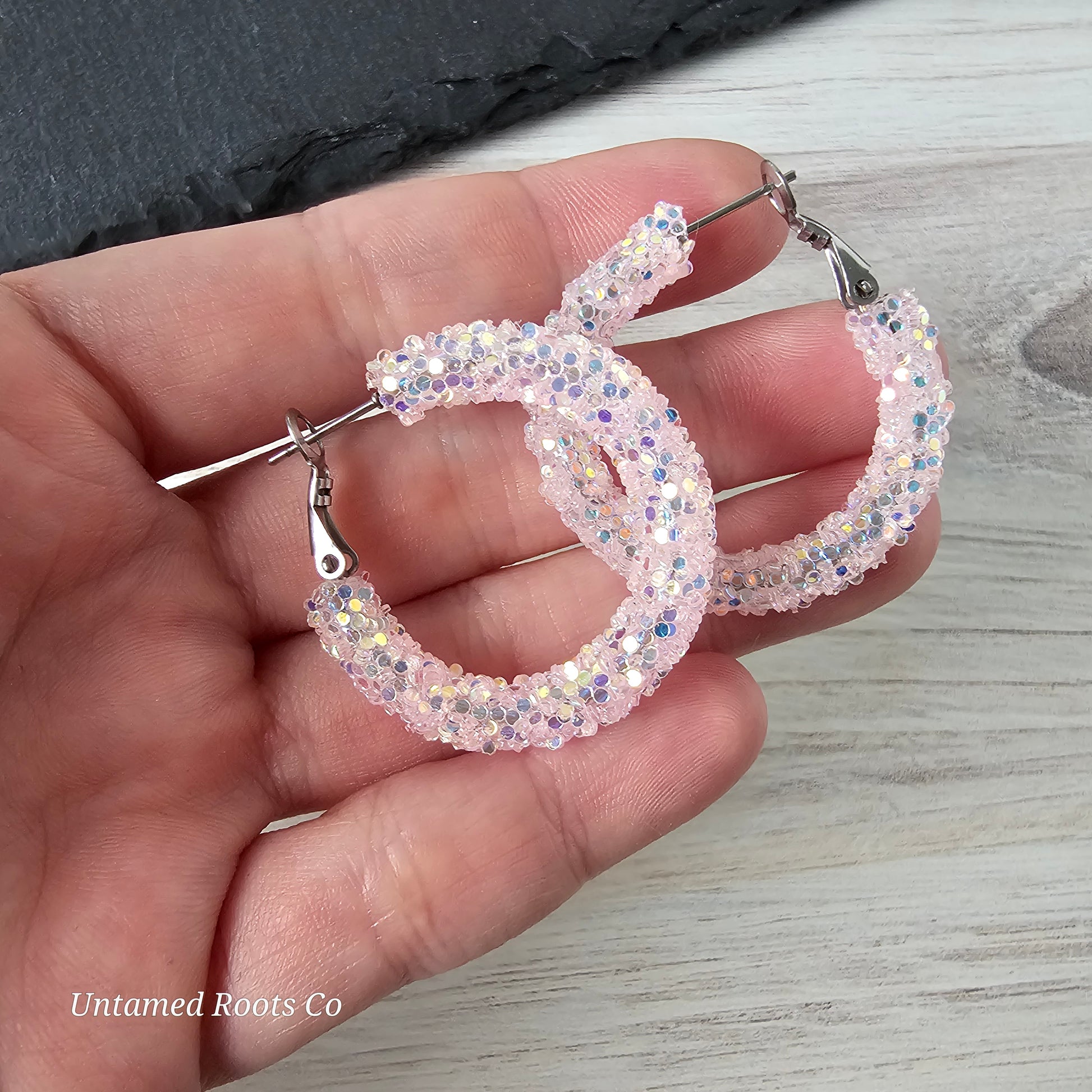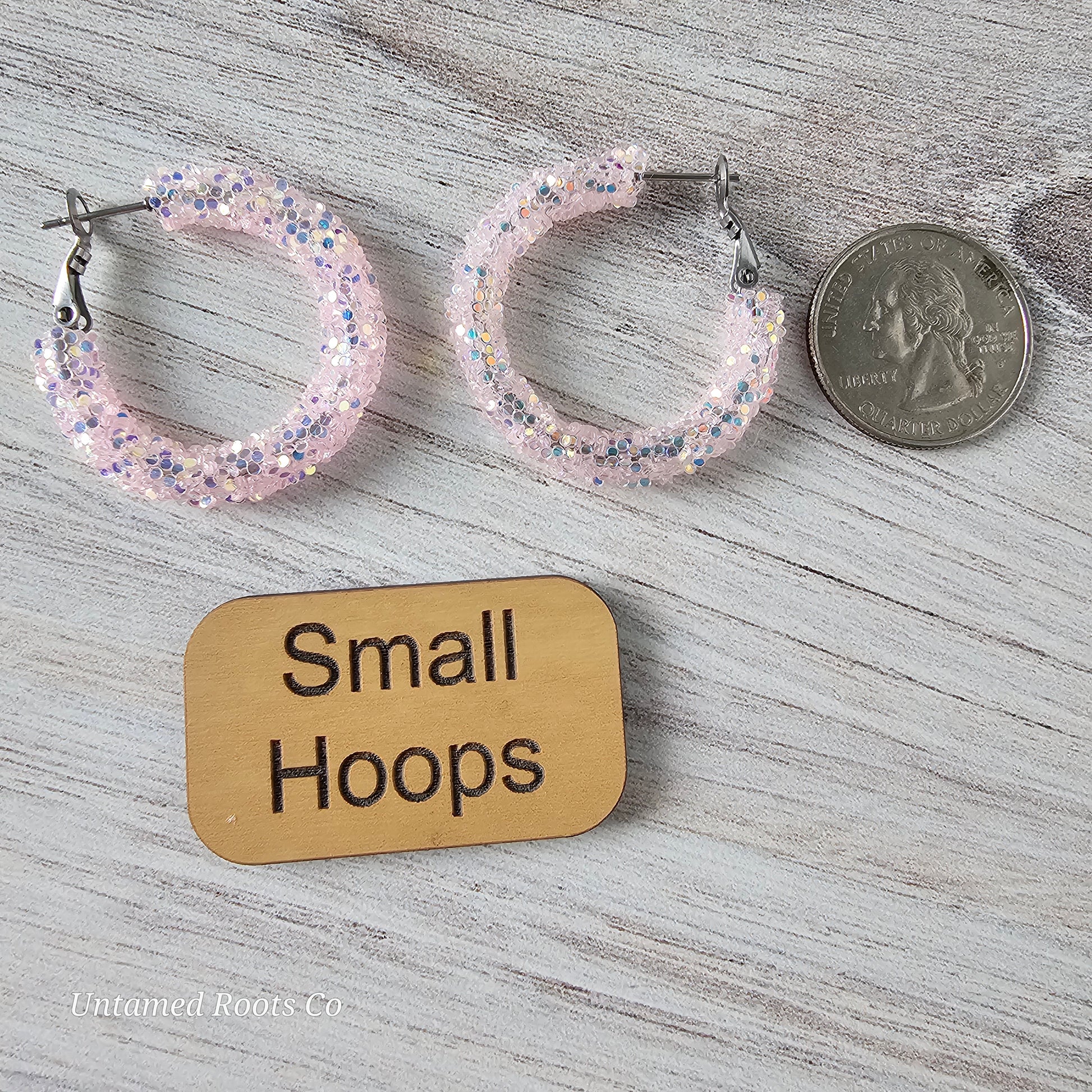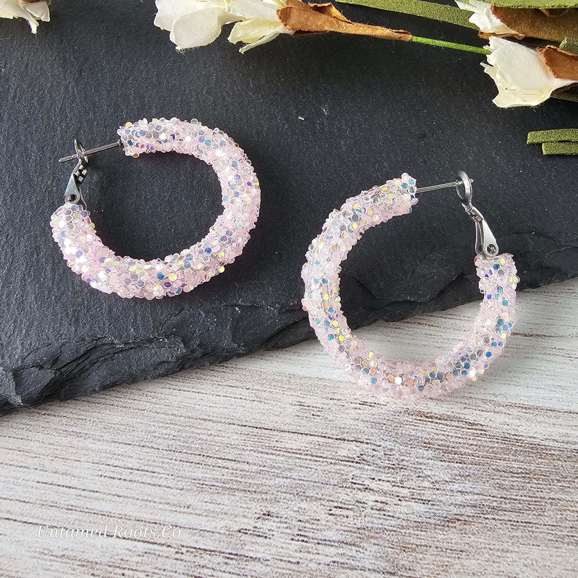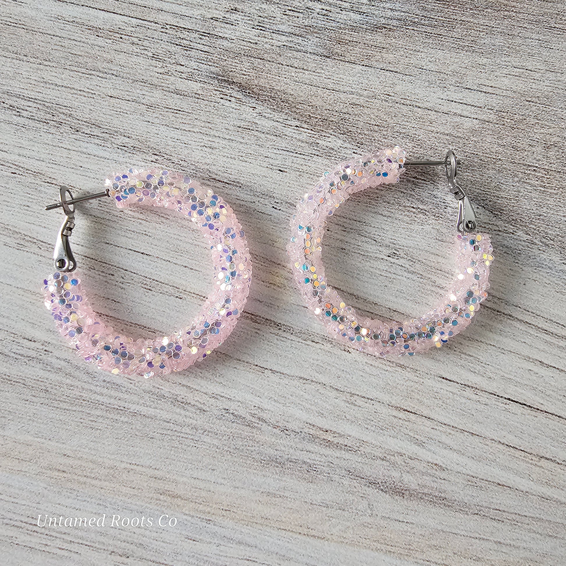 Our glitter hoops add a touch of sparkle to any outfit. Made with stainless steel, they're perfect for those with sensitive ears. The glitter is sealed, ensuring a mess-free and long-lasting shine.