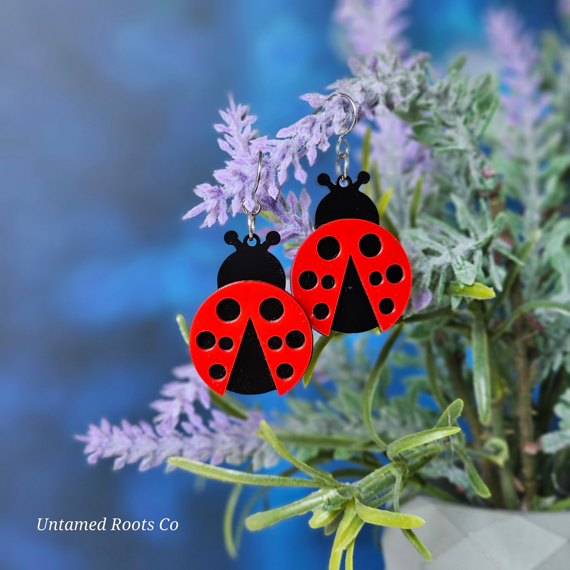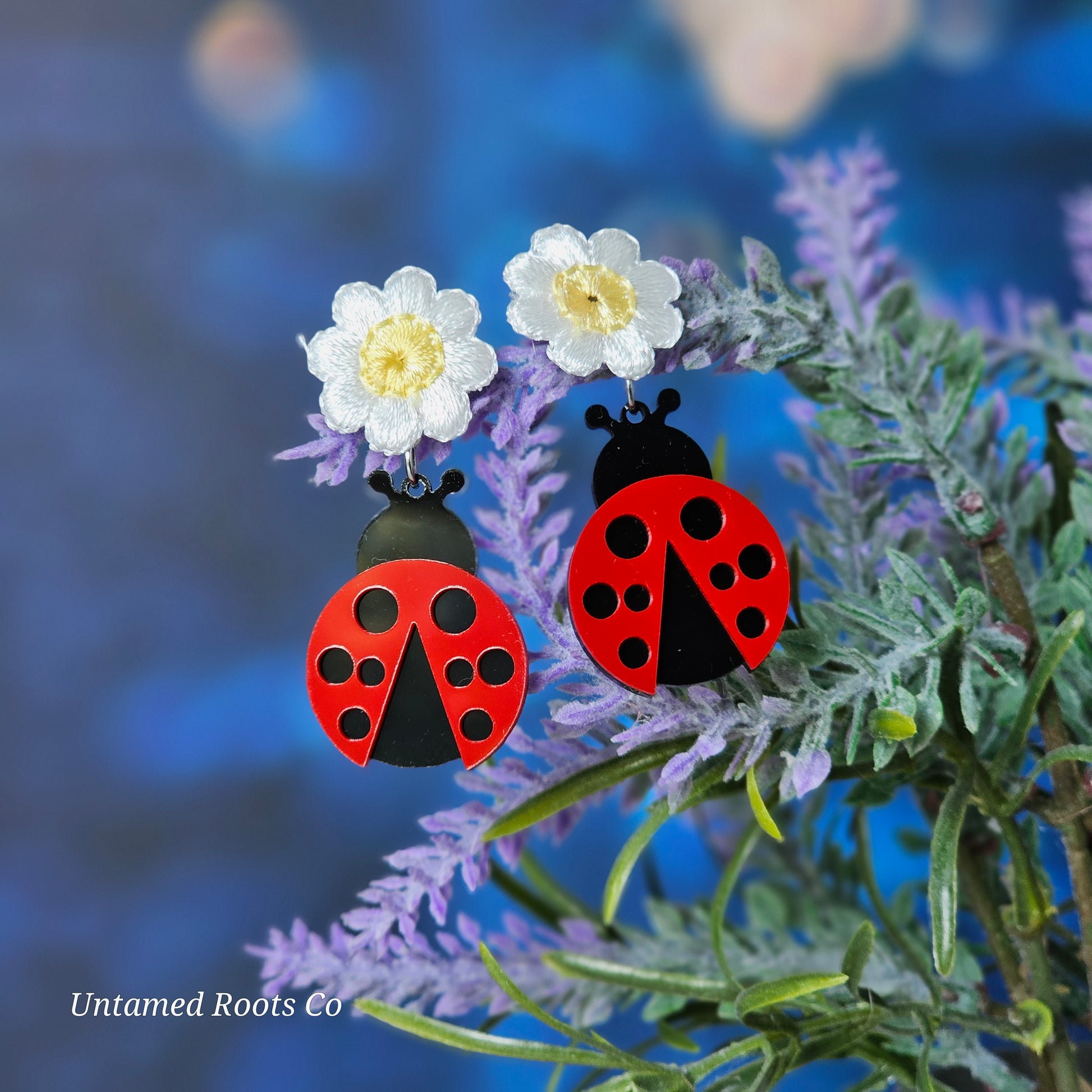 Introducing our Ladybug Earrings, crafted with glossy layered acrylic for a lightweight and comfortable fit. Choose between the Embroidered Floral Stud option or Classic ear wire, and rest assured with stainless steel hardware for sensitive ears. Perfect for adding a touch of nature and elegance to any outfit.