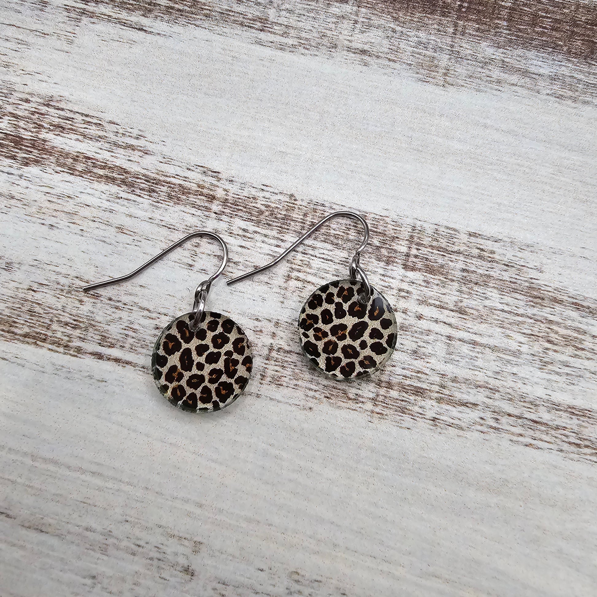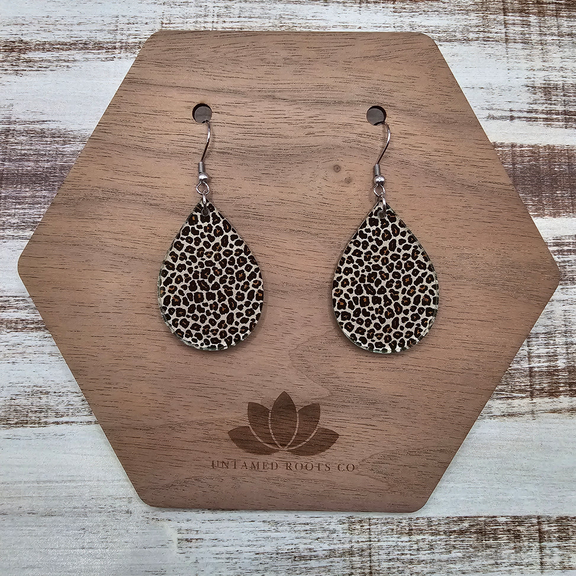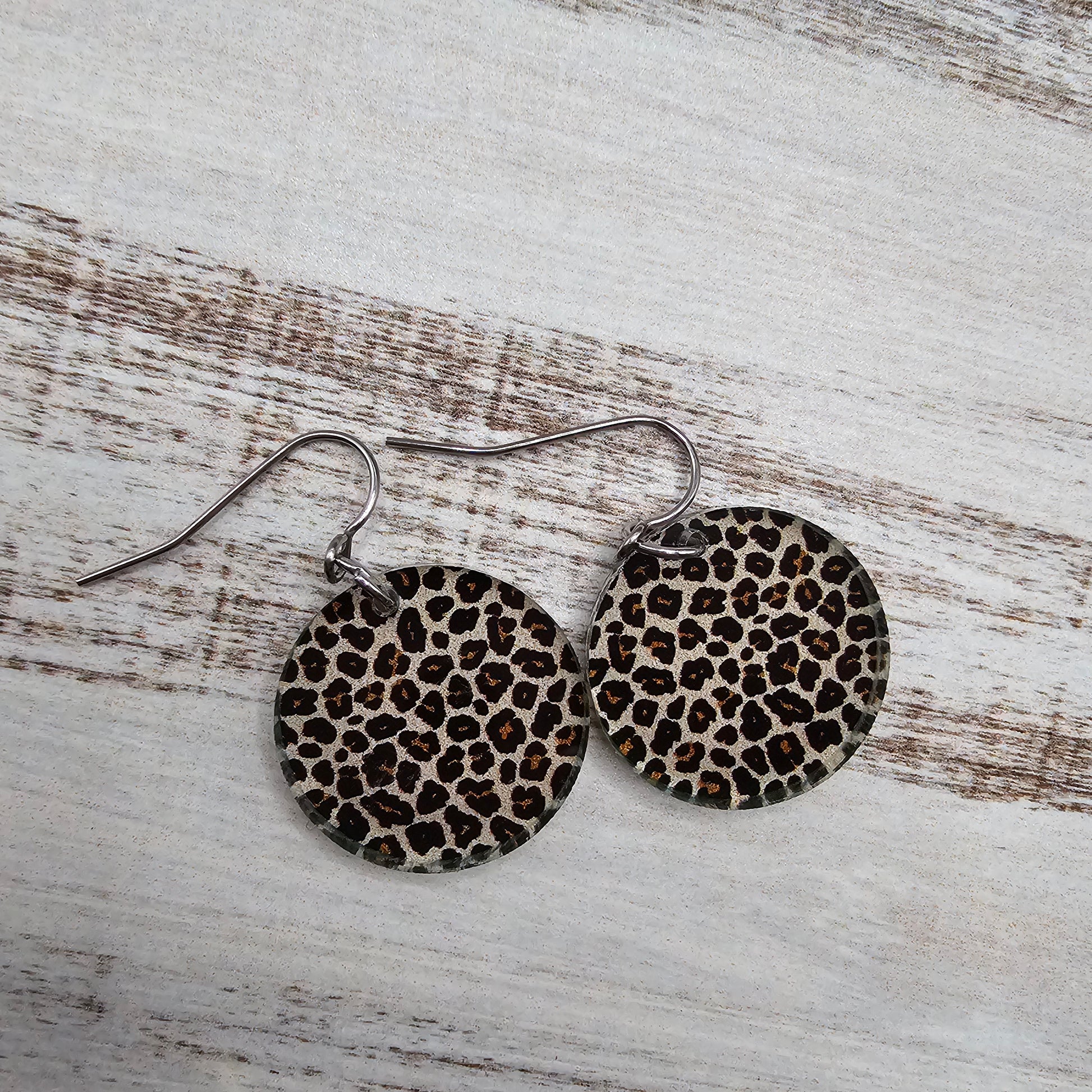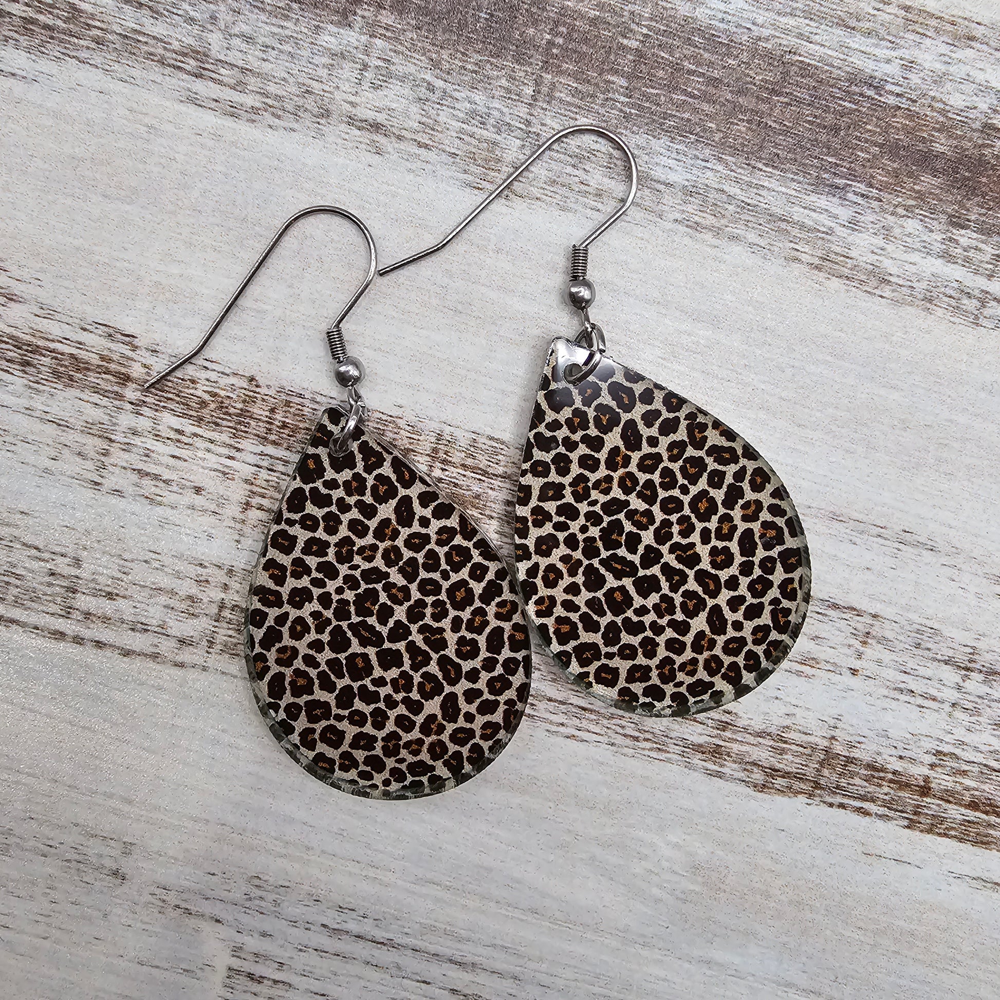 Add some fierce style to your look with the Leopard Print Earrings. Choose from 8 different sizes and shapes, all featuring clear acrylic with tiny leopard print for a subtle yet striking look.