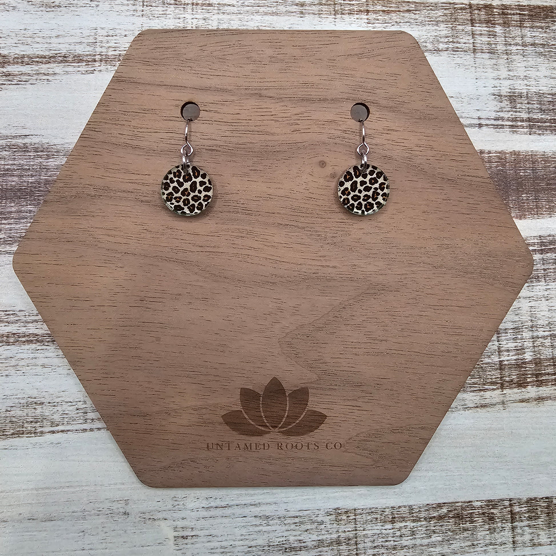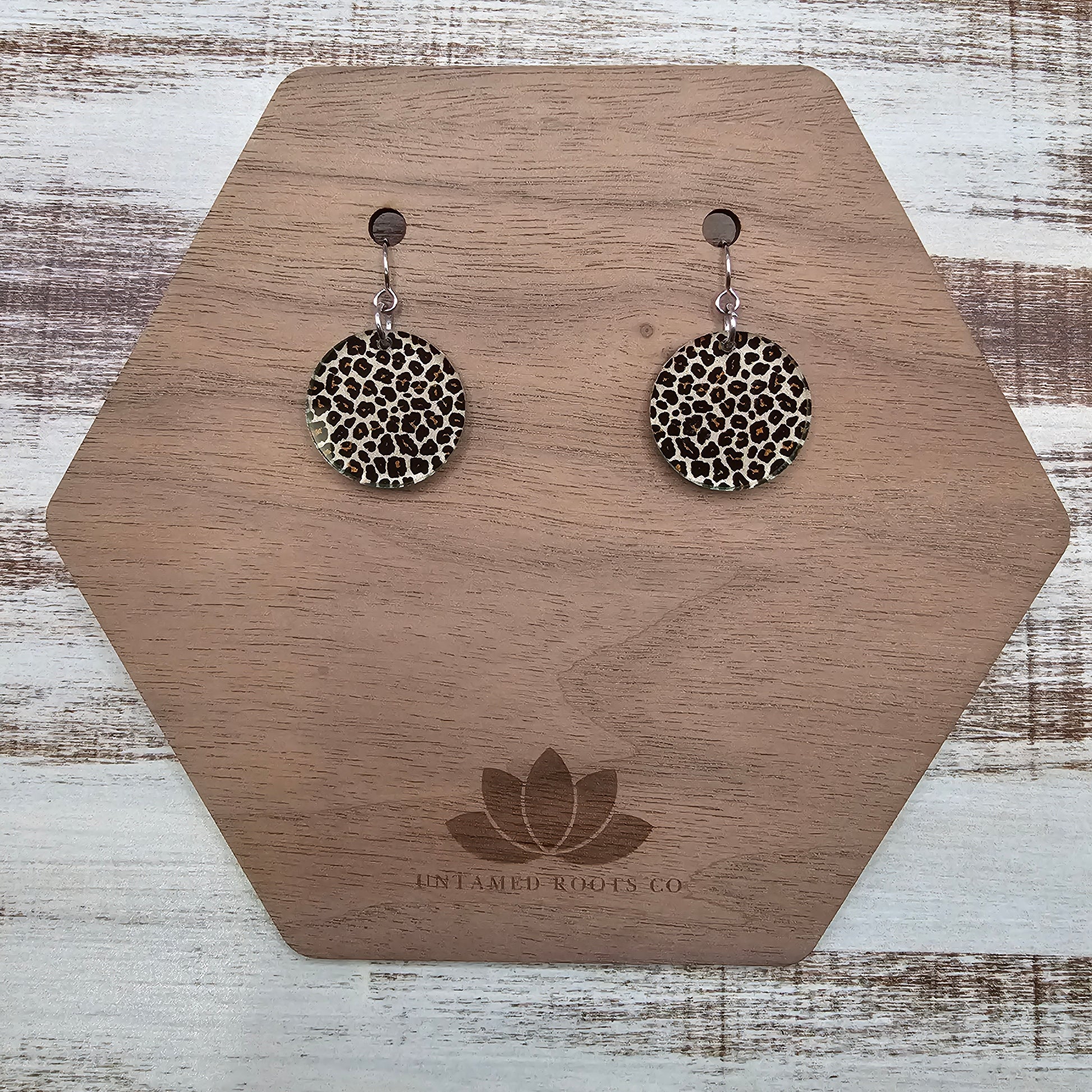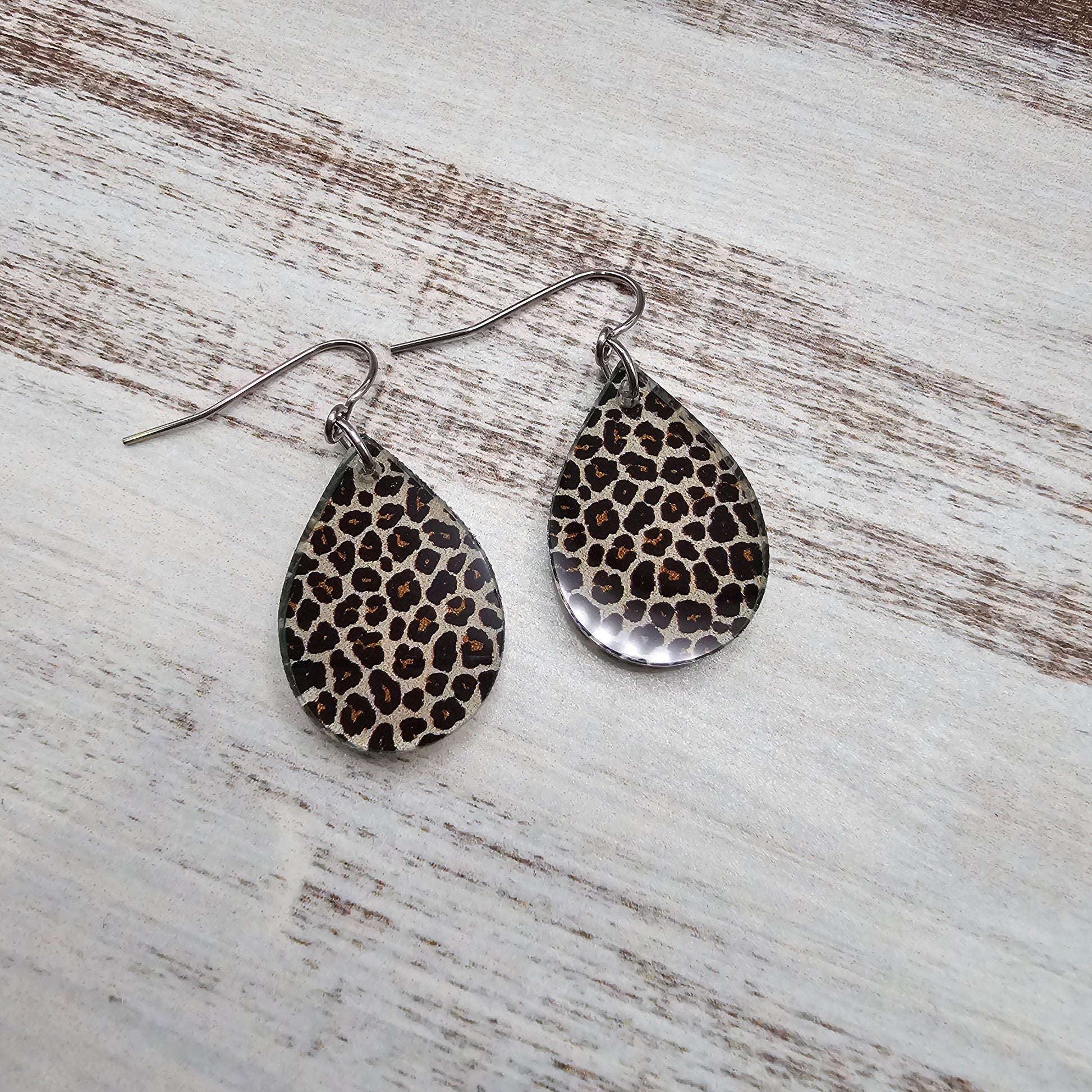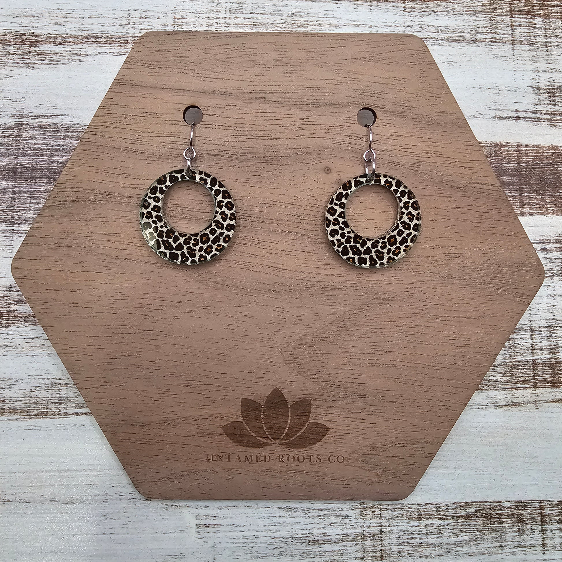 Add some fierce style to your look with the Leopard Print Earrings. Choose from 8 different sizes and shapes, all featuring clear acrylic with tiny leopard print for a subtle yet striking look.