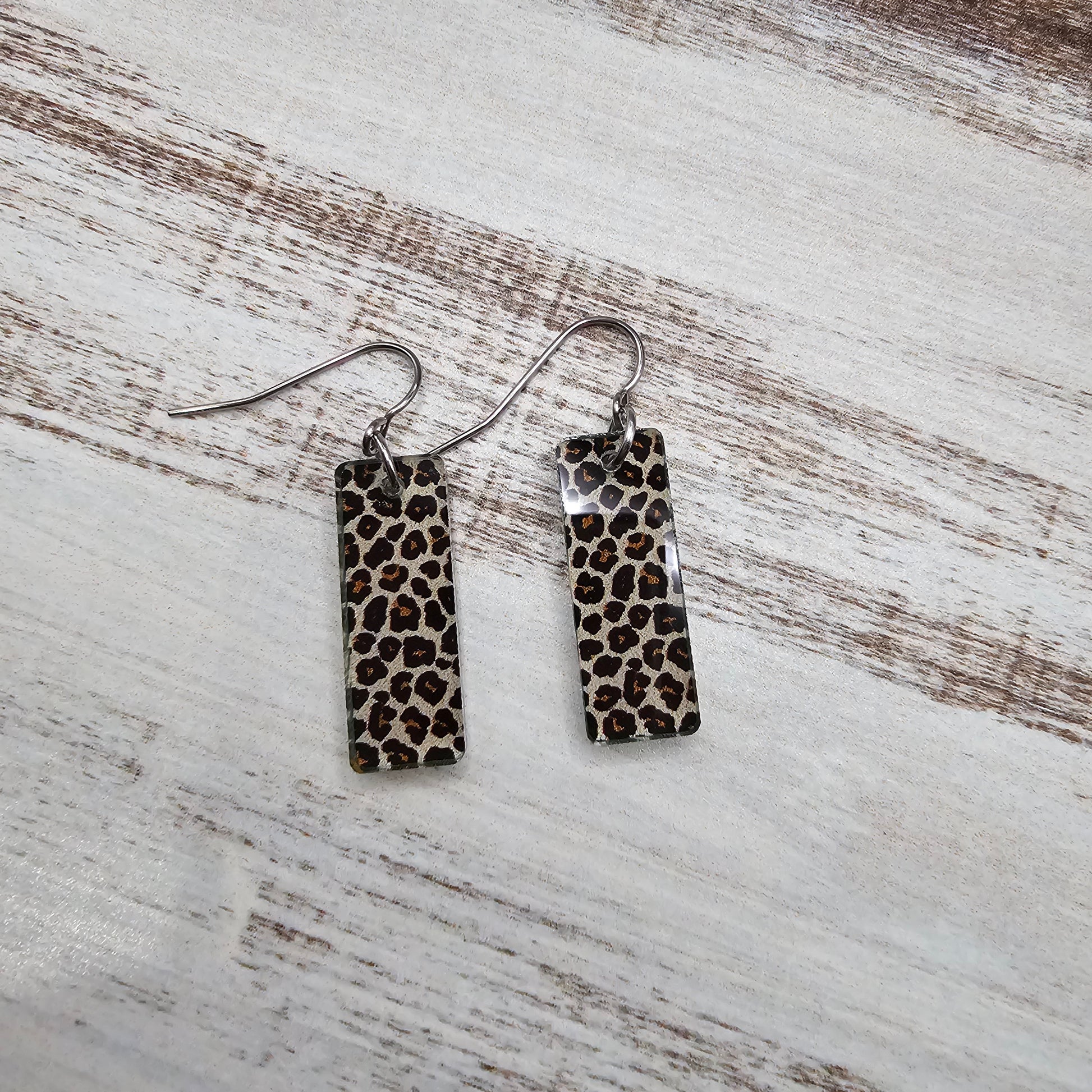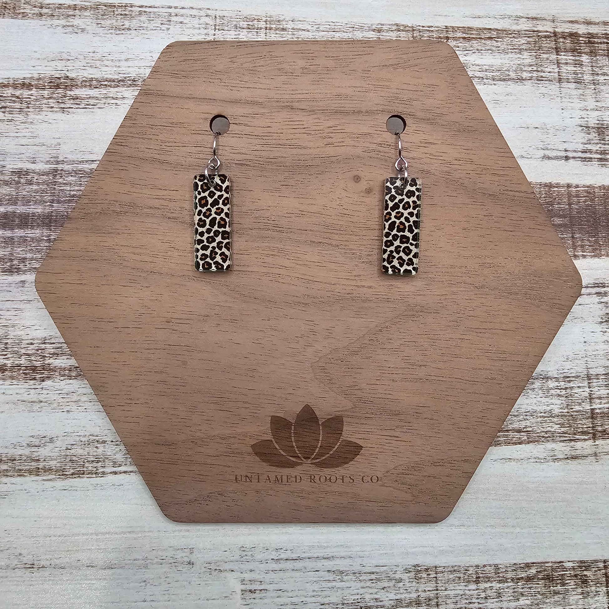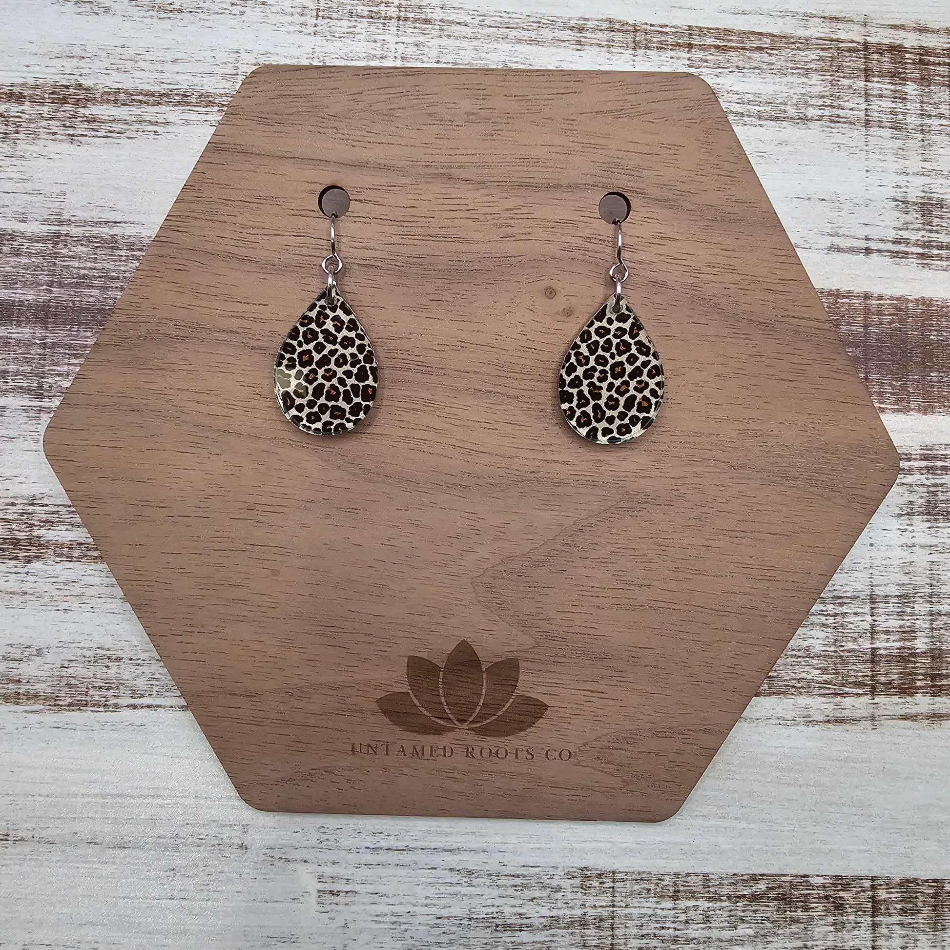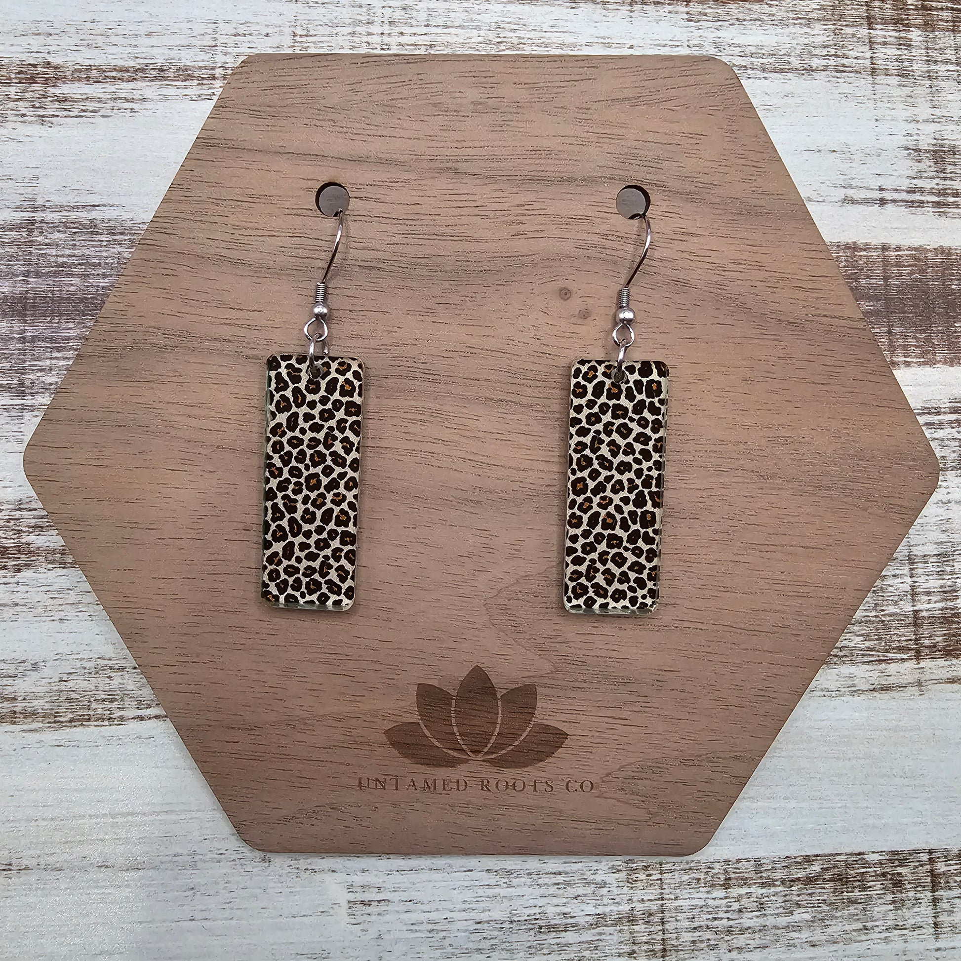 Add some fierce style to your look with the Leopard Print Earrings. Choose from 8 different sizes and shapes, all featuring clear acrylic with tiny leopard print for a subtle yet striking look.