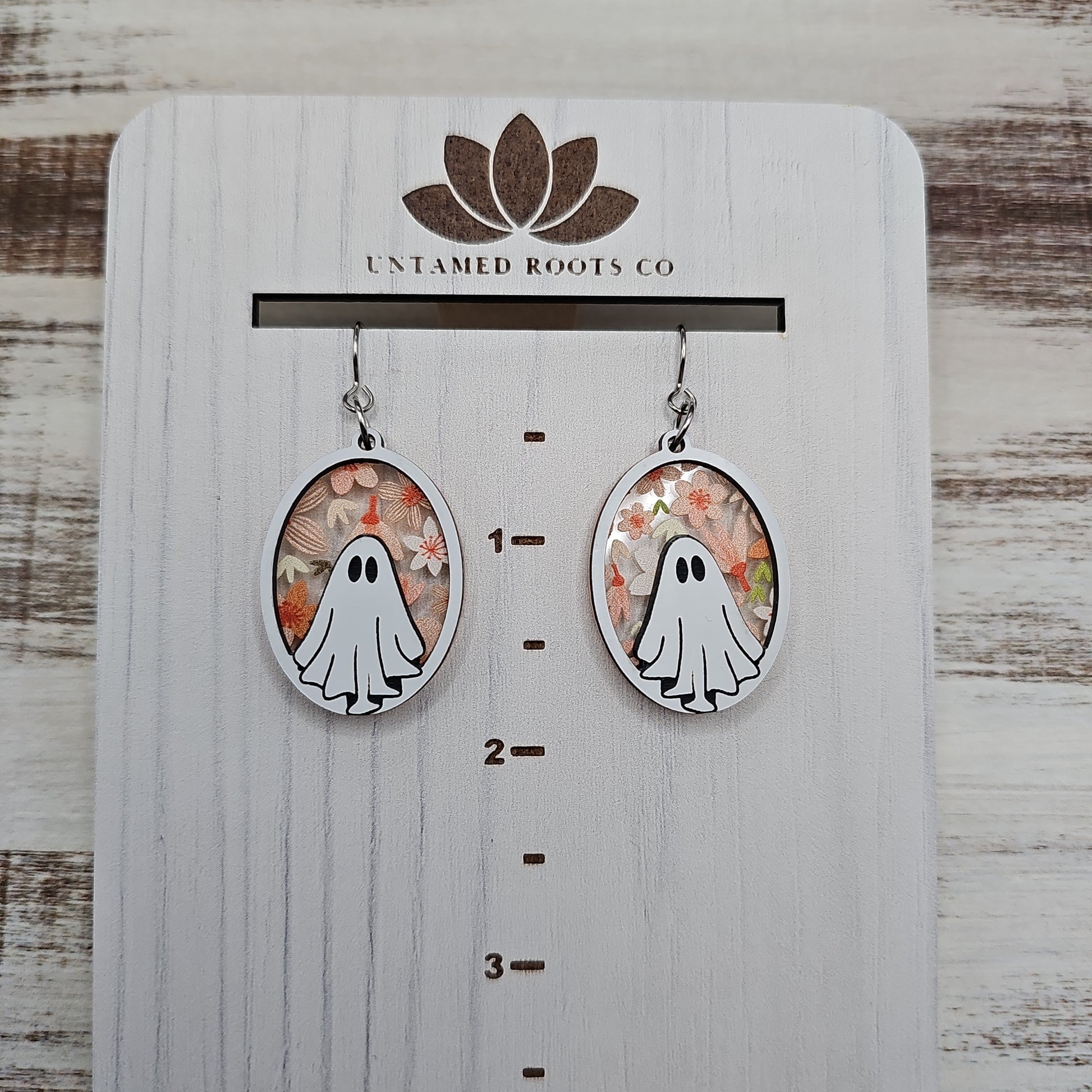 Looking for an eerie yet enchanting look? These Orange Floral Ghost Earrings are the perfect way to add a mystical touch to your style! Each earring features a boho-style oval shape, engraved ghost, and a beautiful floral background - all atop hypoallergenic stainless steel hardware. Get spooky and stylish with these must-have earrings!