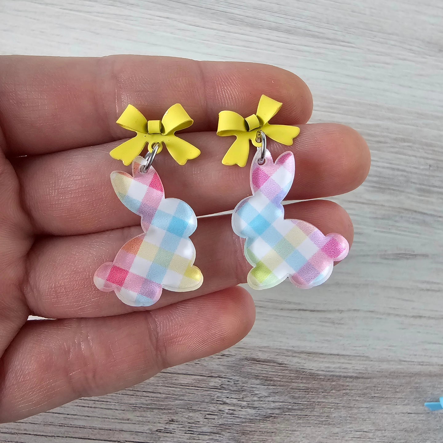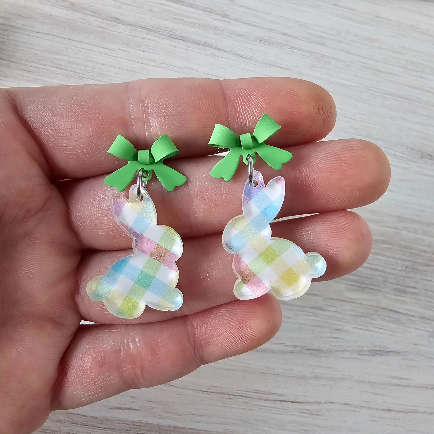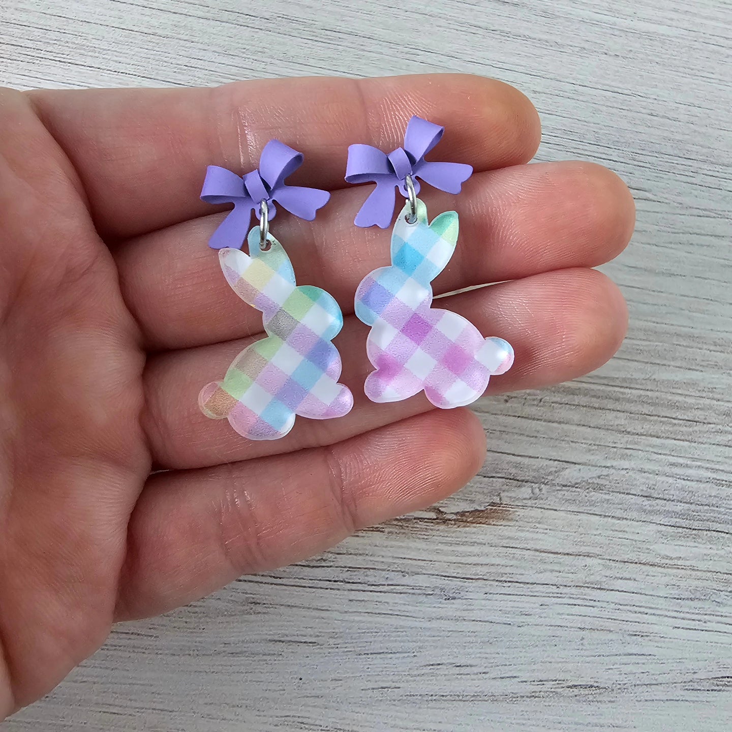 Pastel Plaid Bunny Earrings
