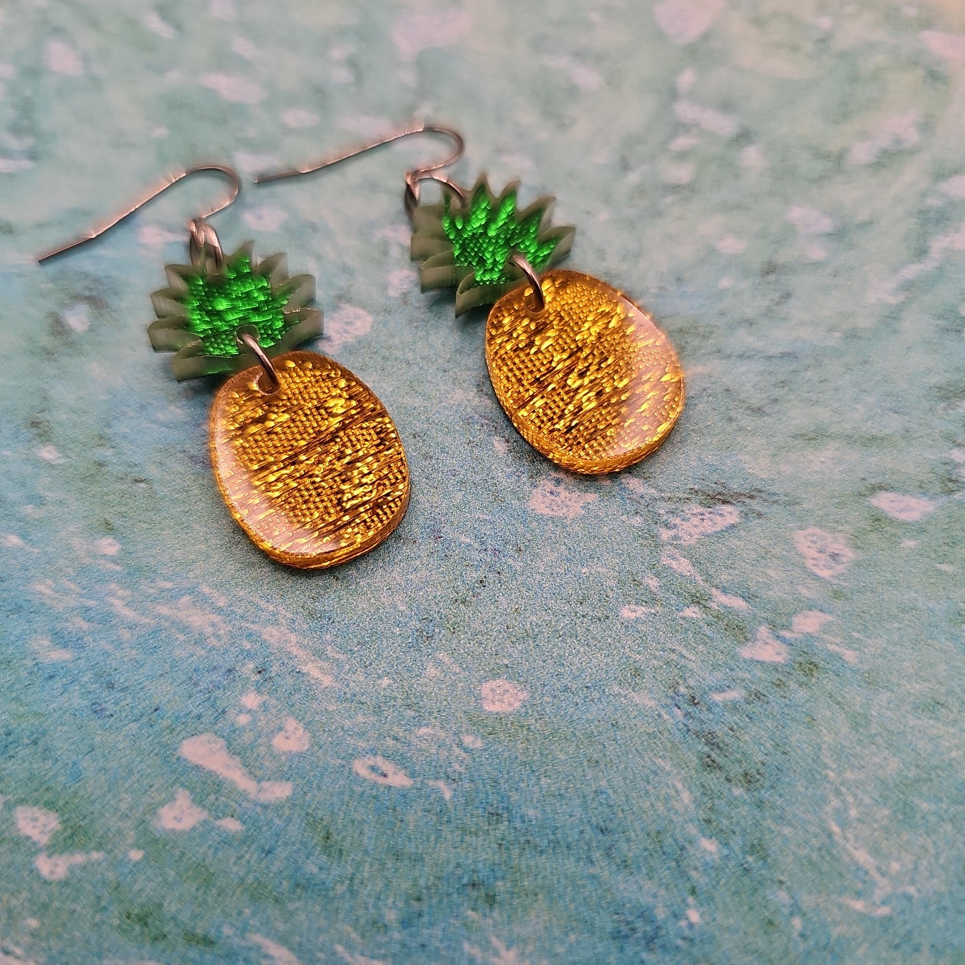 These Pineapple Earrings are a sassy tropical treat! Crafted in shimmery fabric acrylic and stainless steel hardware, these adorably designed accessories will add a touch of fun to any outfit.