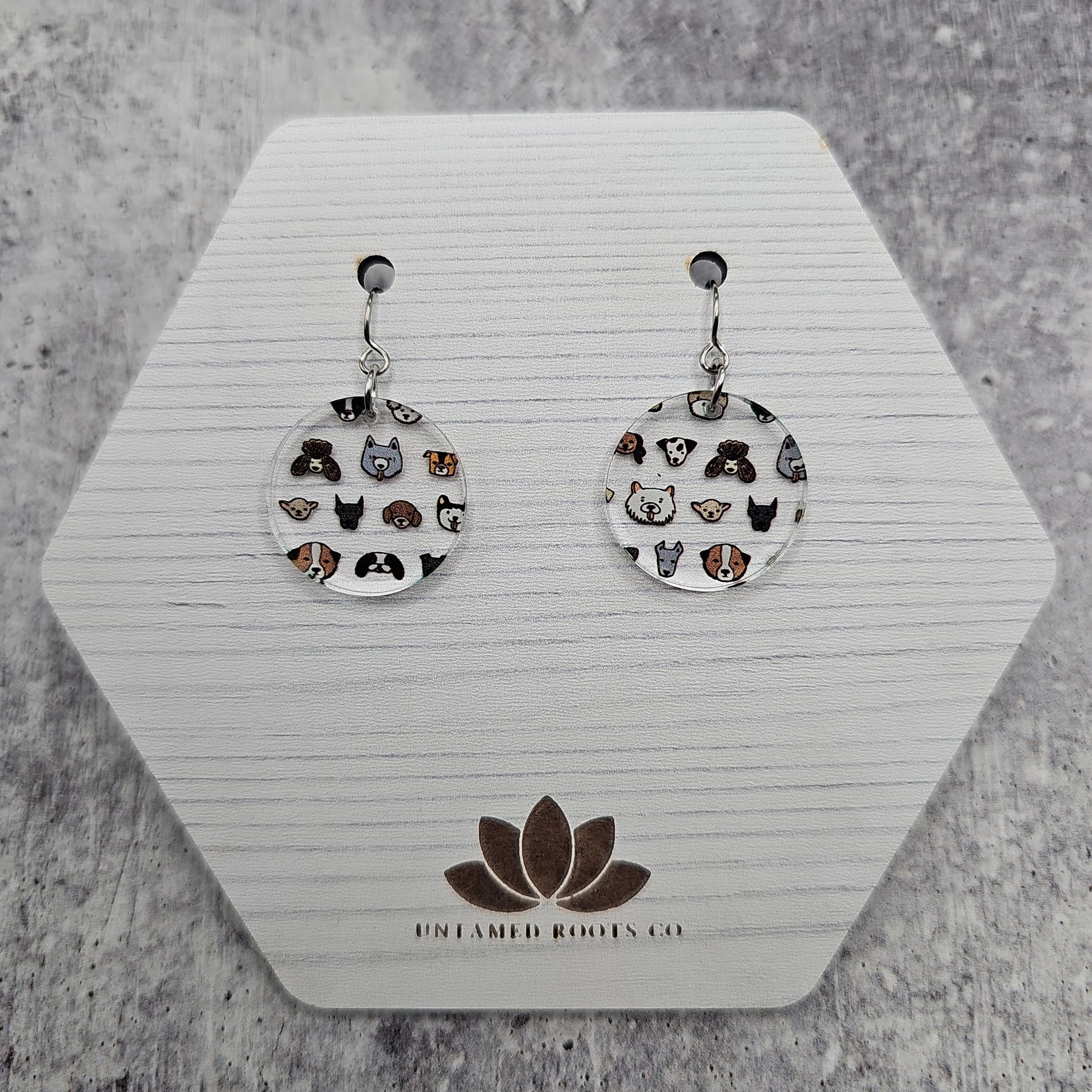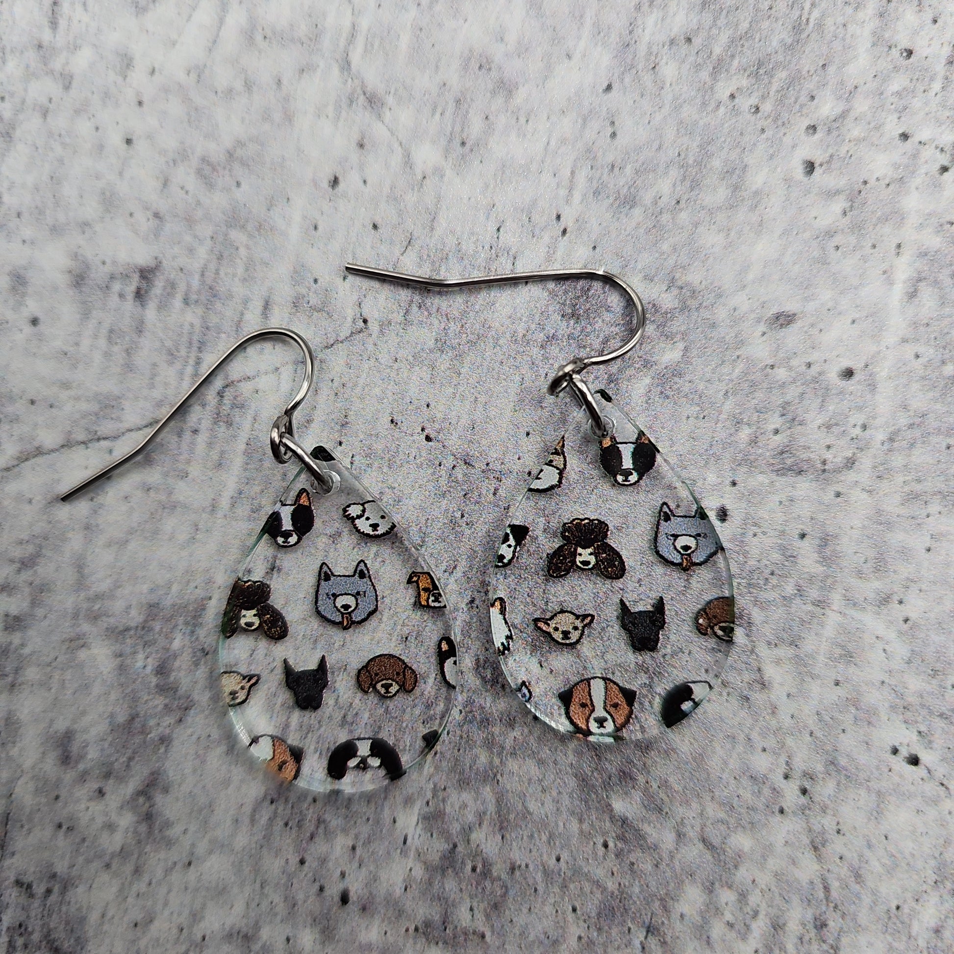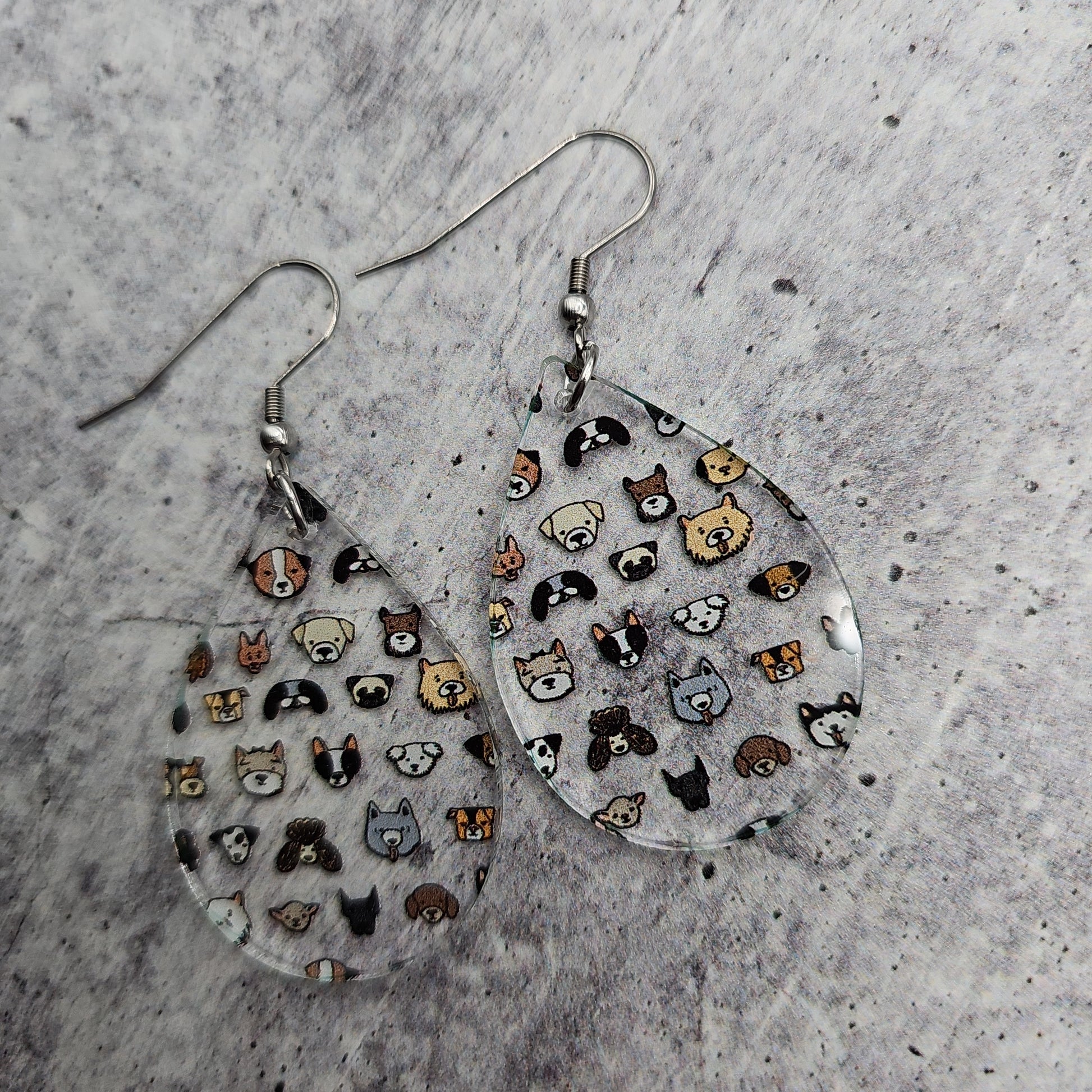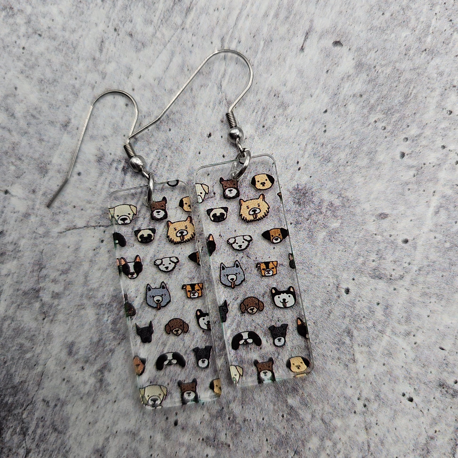 Available in 5 different sizes and shapes, these earrings feature many different dog breeds!