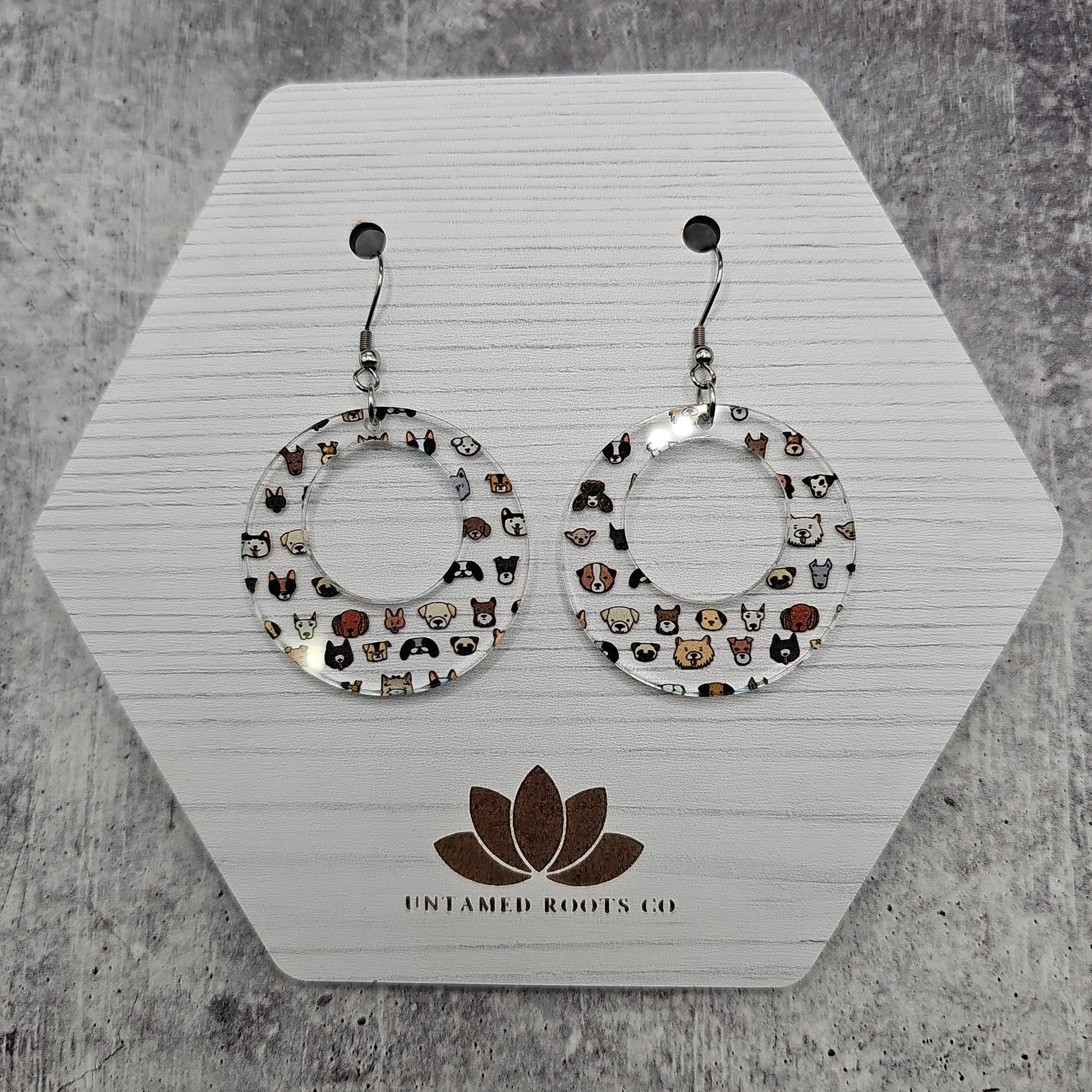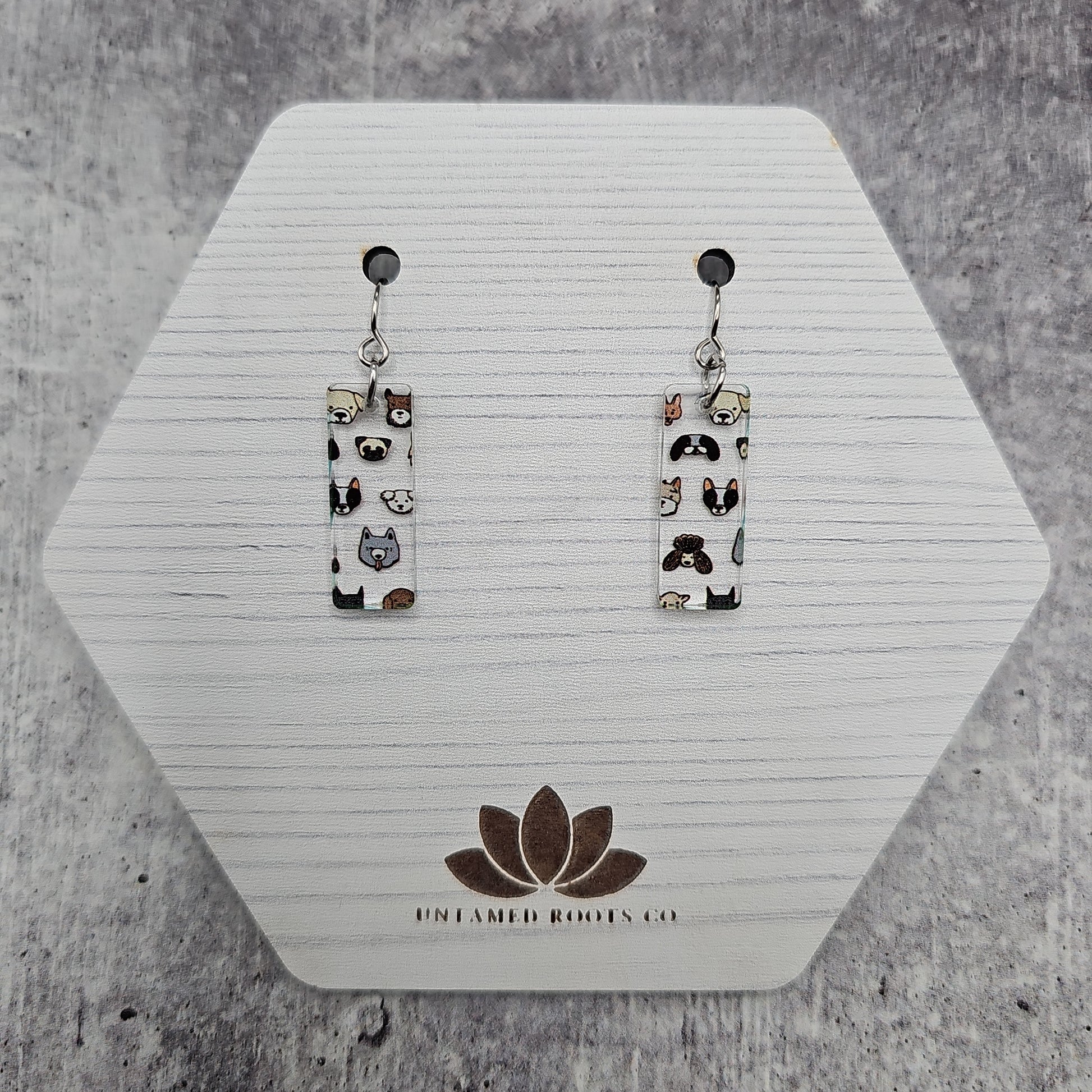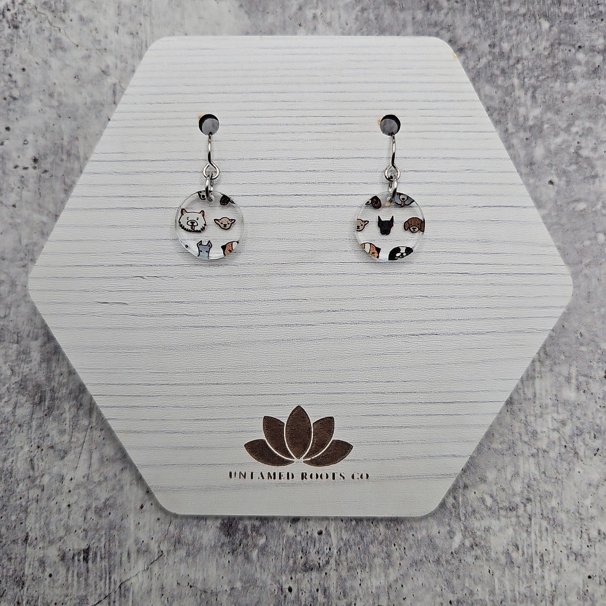 Available in 5 different sizes and shapes, these earrings feature many different dog breeds!