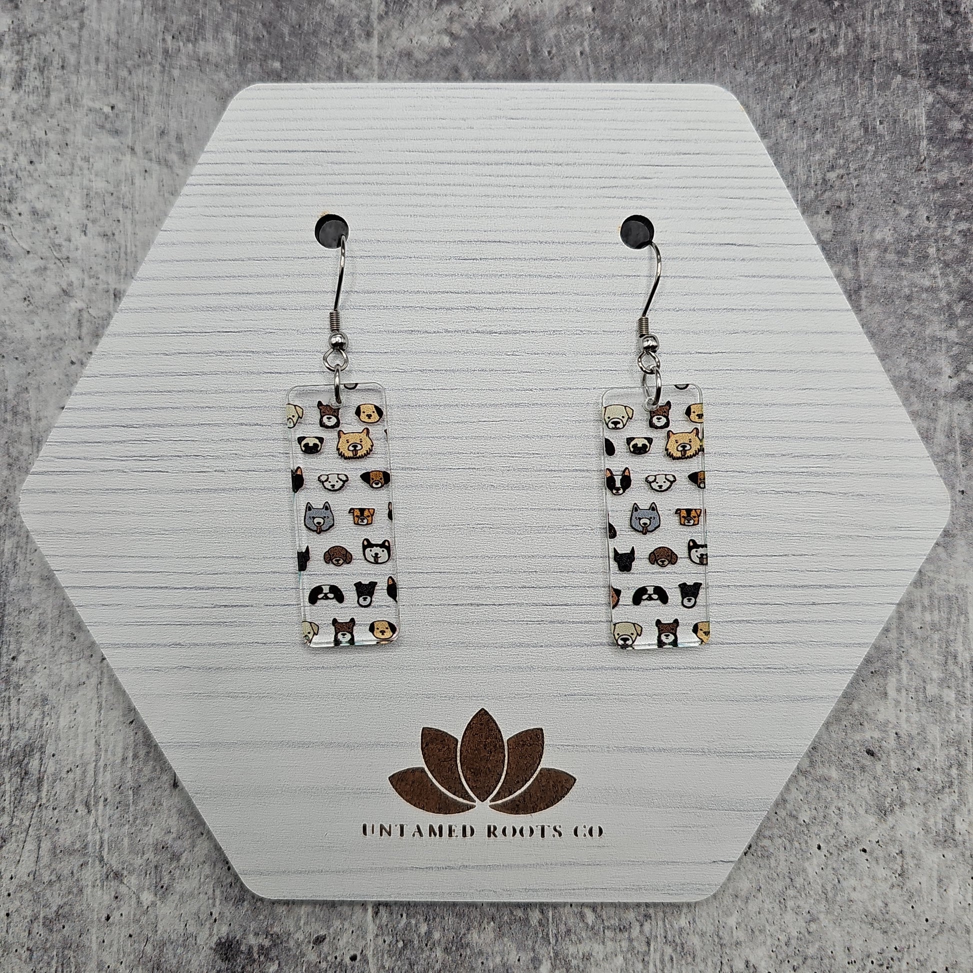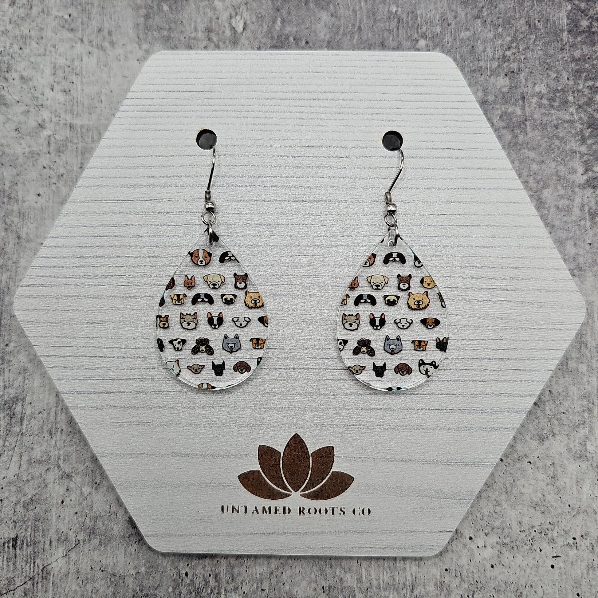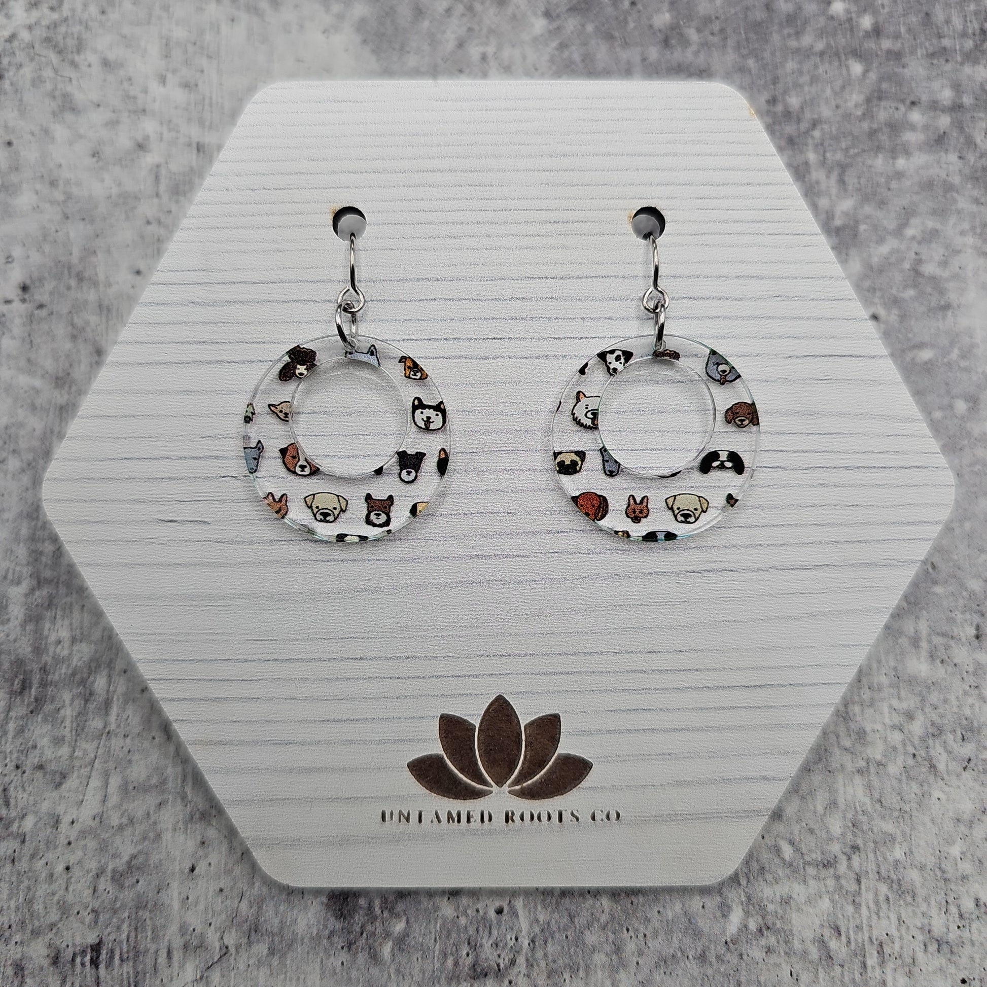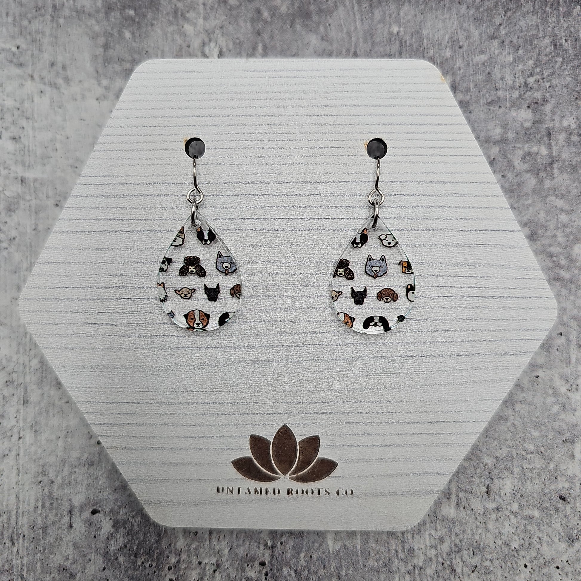 Available in 5 different sizes and shapes, these earrings feature many different dog breeds!