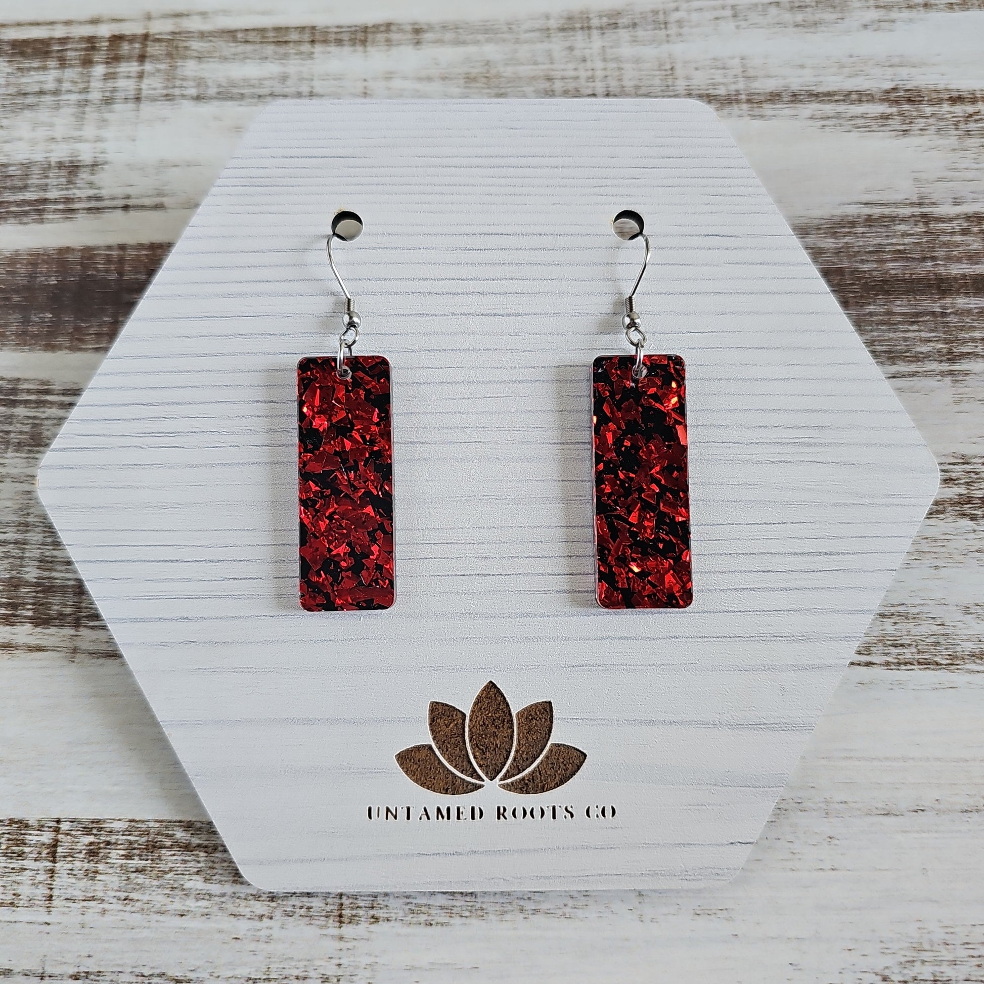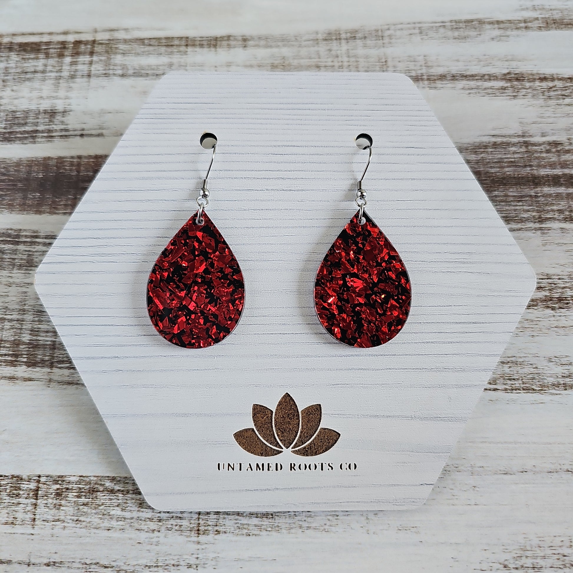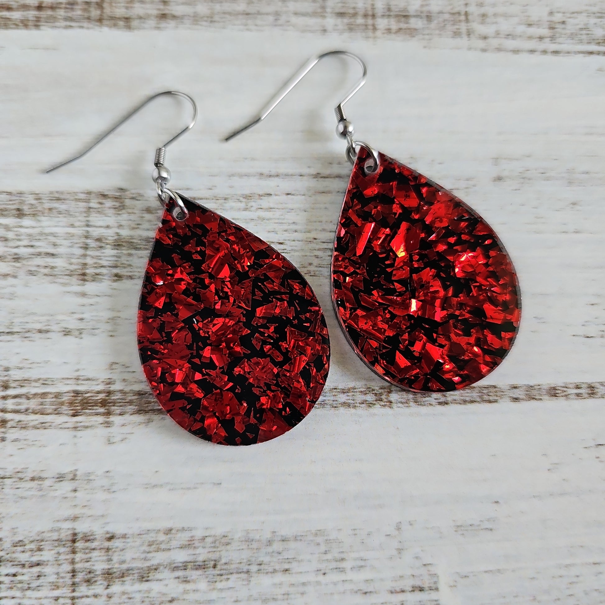 Rep your school spirit with these flashy Black & Red Chunky Glitter Earrings! The 8 styles offer something to match every outfit, with glitter that'll have you shining like the star power you are.