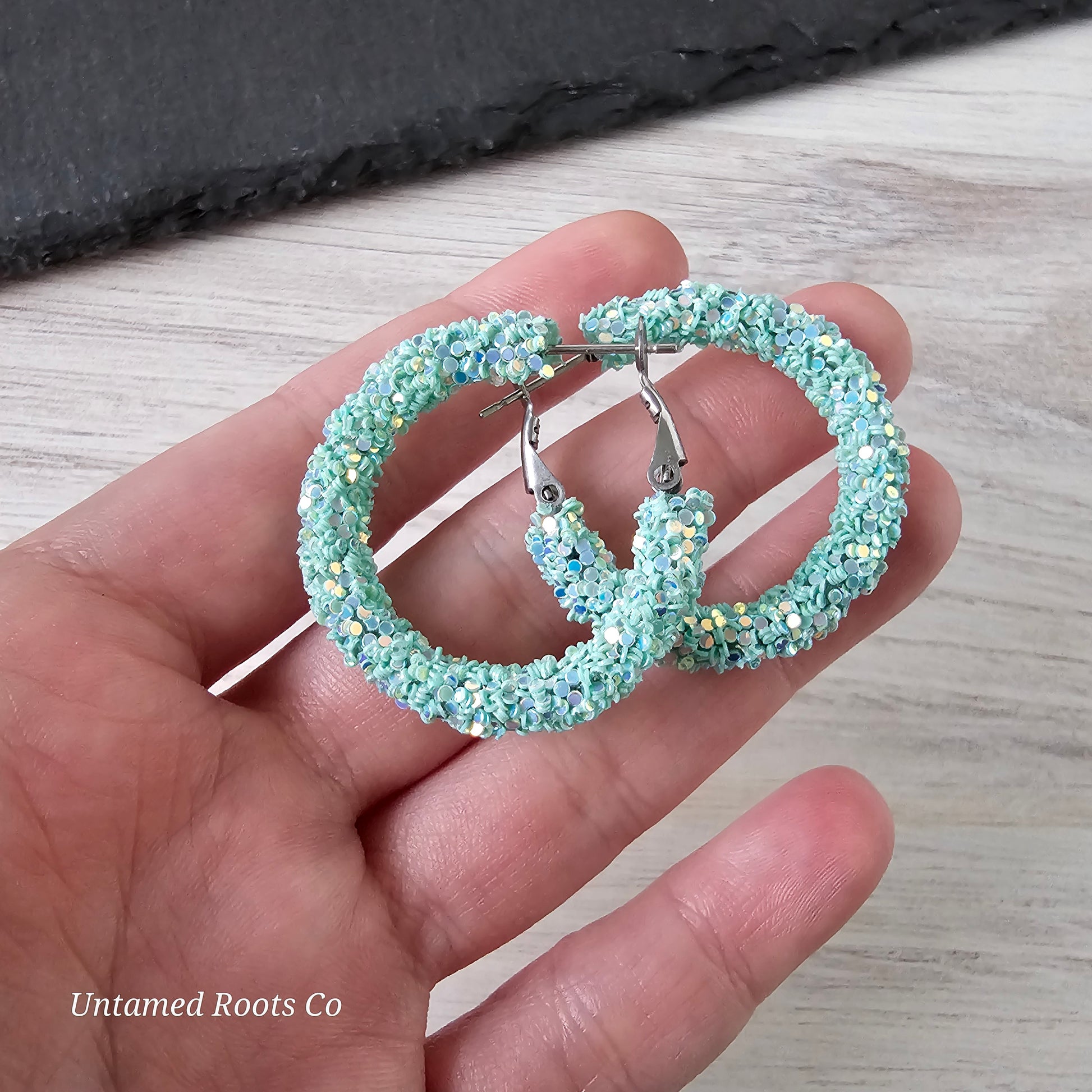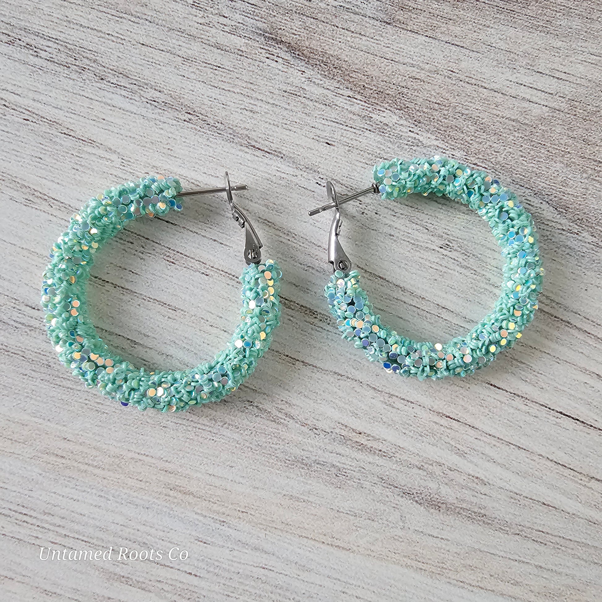 Our glitter hoops add a touch of sparkle to any outfit. Made with stainless steel, they're perfect for those with sensitive ears. The glitter is sealed, ensuring a mess-free and long-lasting shine.