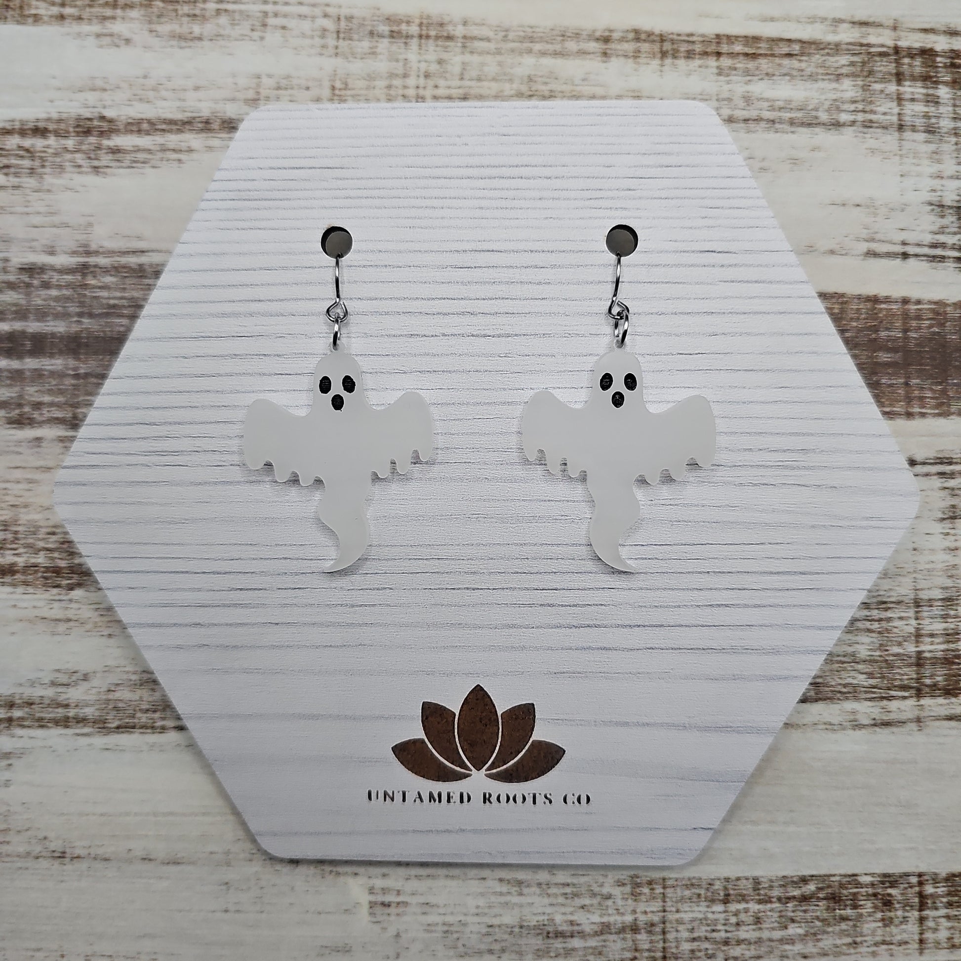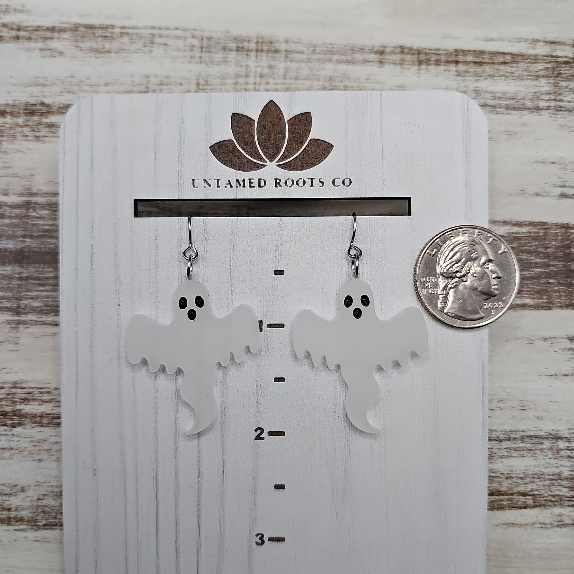 Breathe life into your look with Spooky Ghosts! Made from unique glow in the dark acrylic, these fun and spooky ghost style earrings will hold their charge for 20-30 minutes. Stainless steel hardware keeps them secure and looking their best. Let your style glow!