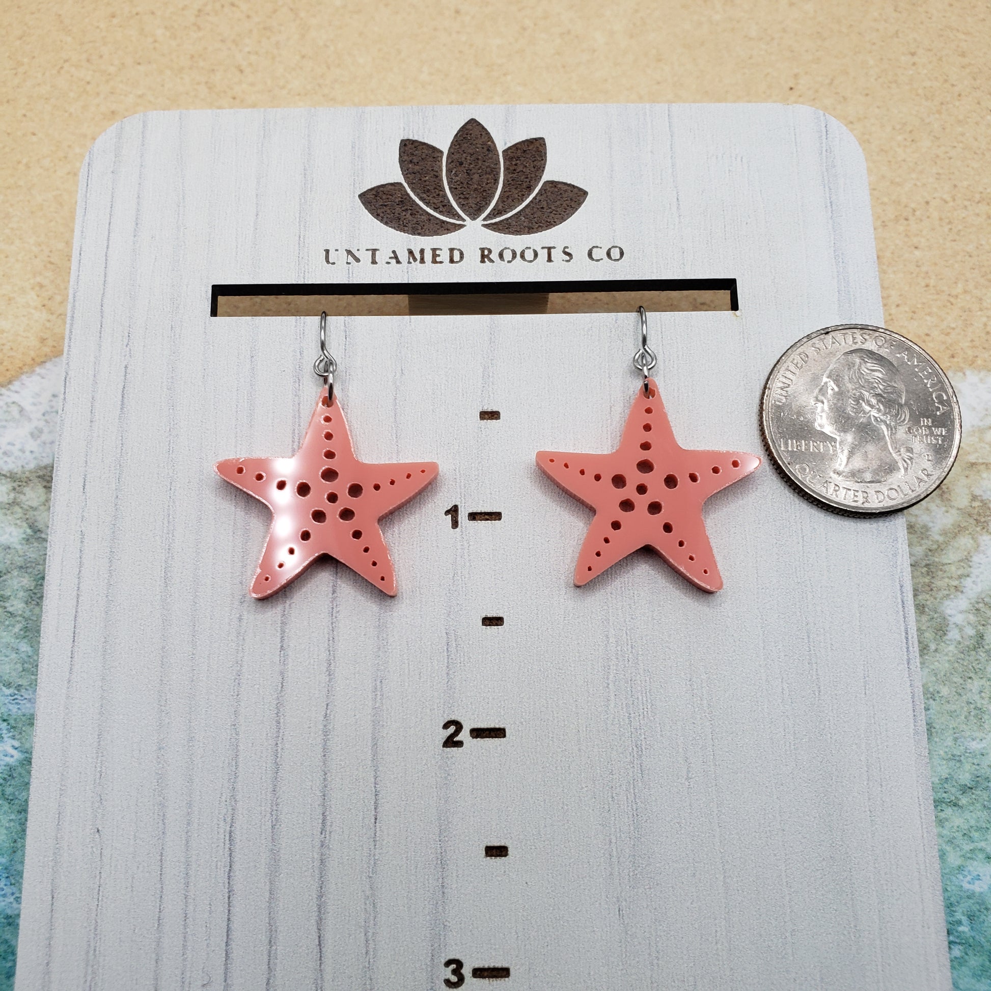 These starfish earrings are made from a gloss soft coral colored acrylic for a more authentic look!