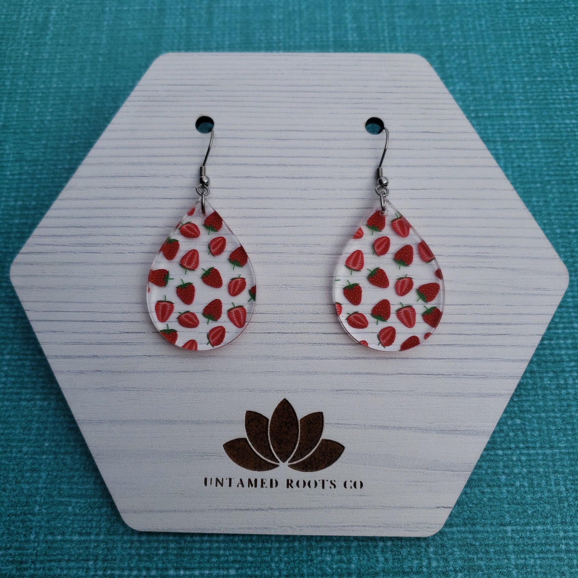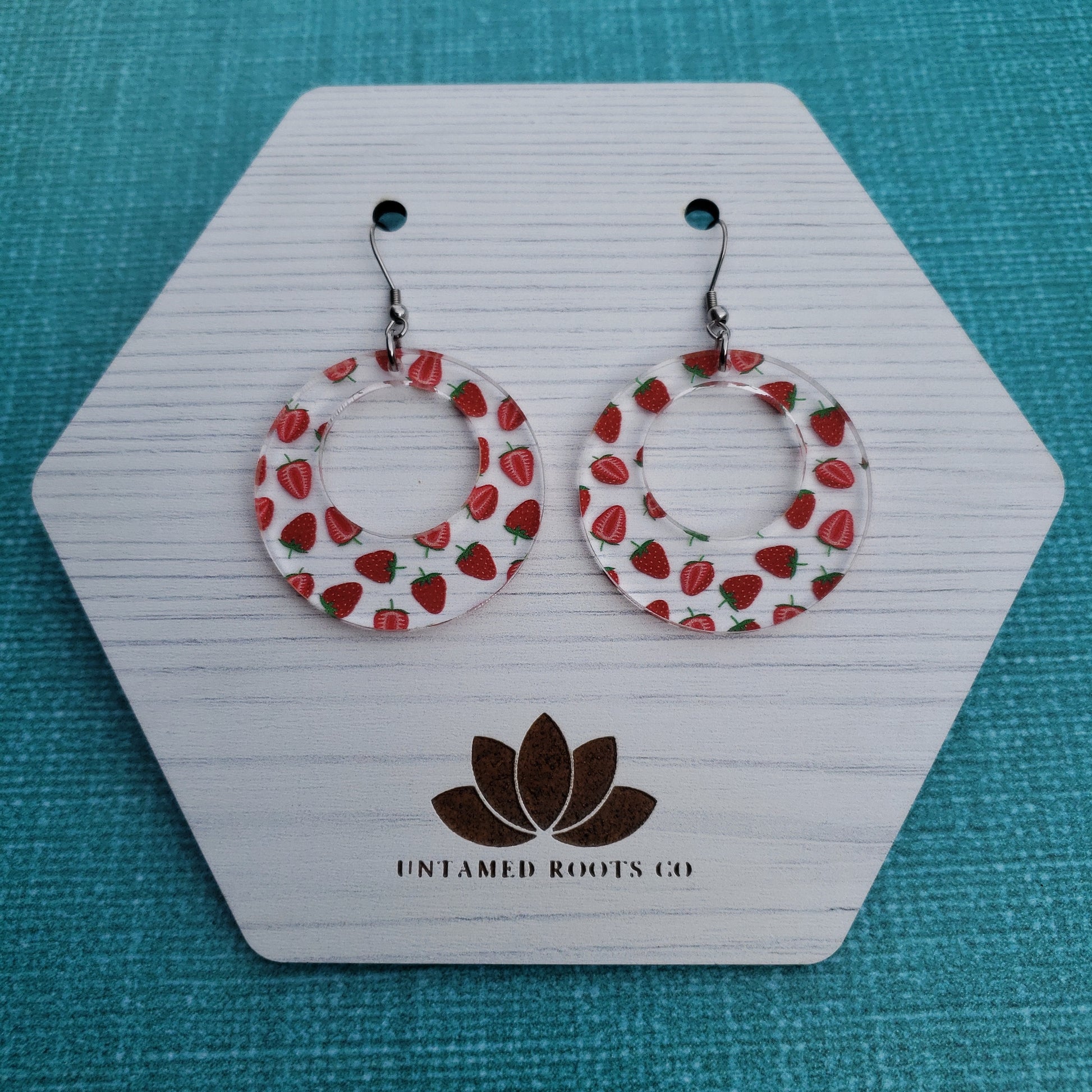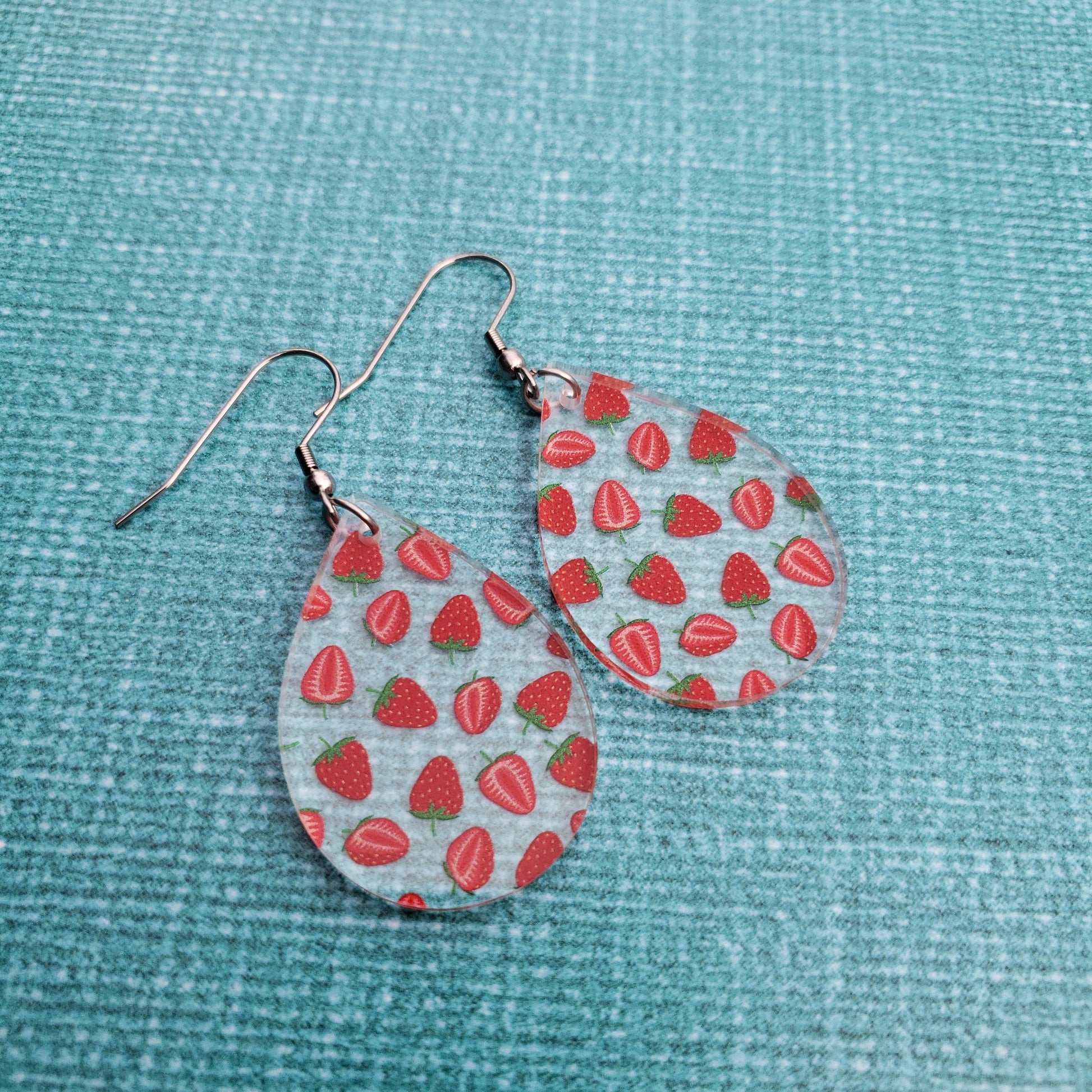 Show off your summer vibes when you slip on these stylish strawberry print earrings! With 8 different styles, you're sure to find the perfect pair that flatter your look. Made from clear acrylic with a delicate strawberry print, these earrings make any outfit pop! Get ready to be the berry best-dressed of them all!