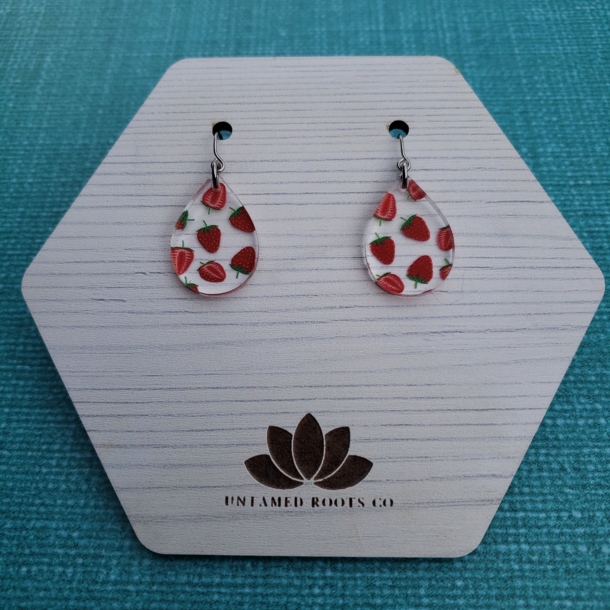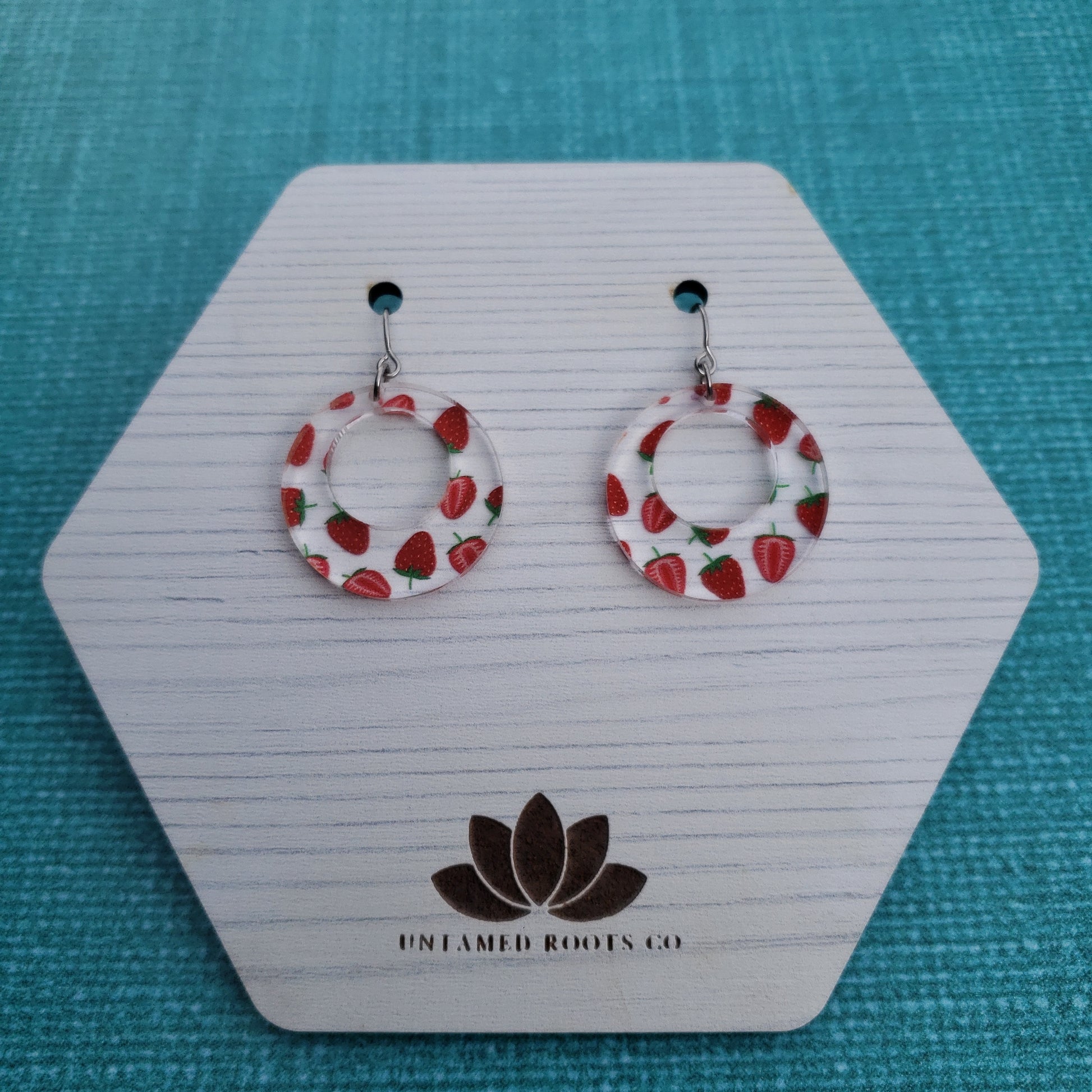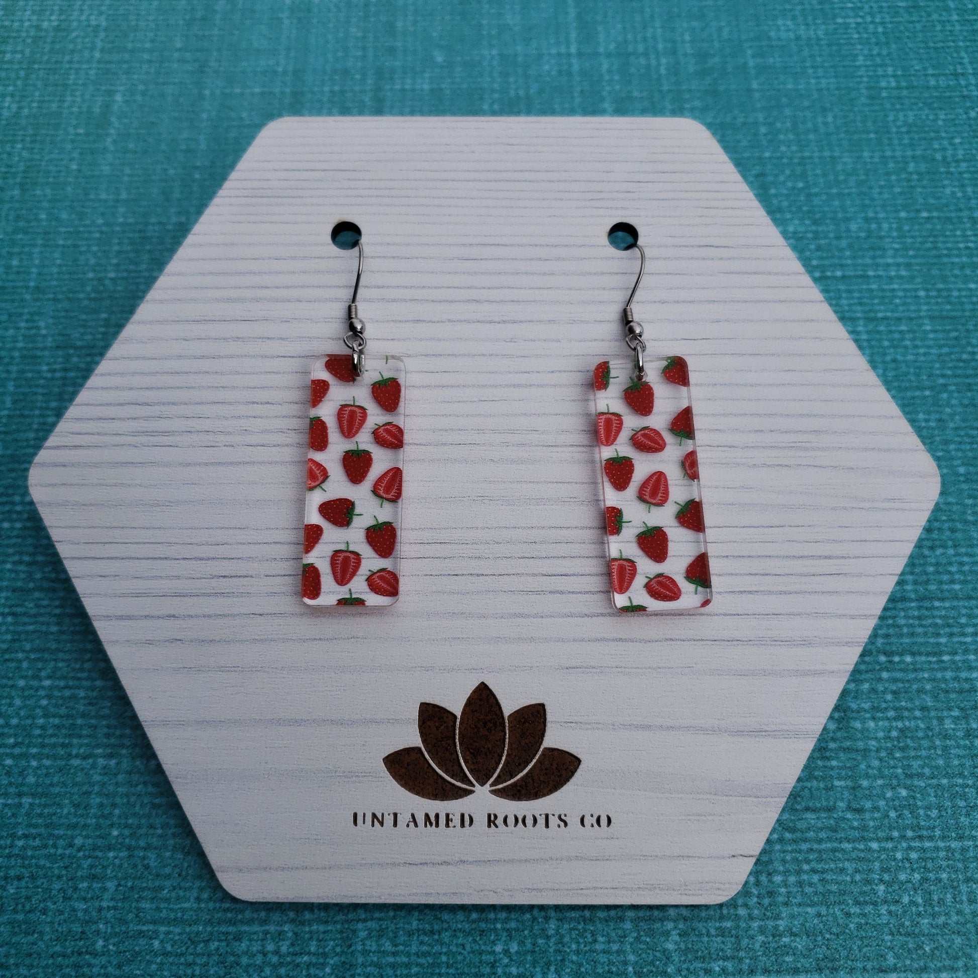 Show off your summer vibes when you slip on these stylish strawberry print earrings! With 8 different styles, you're sure to find the perfect pair that flatter your look. Made from clear acrylic with a delicate strawberry print, these earrings make any outfit pop! Get ready to be the berry best-dressed of them all!