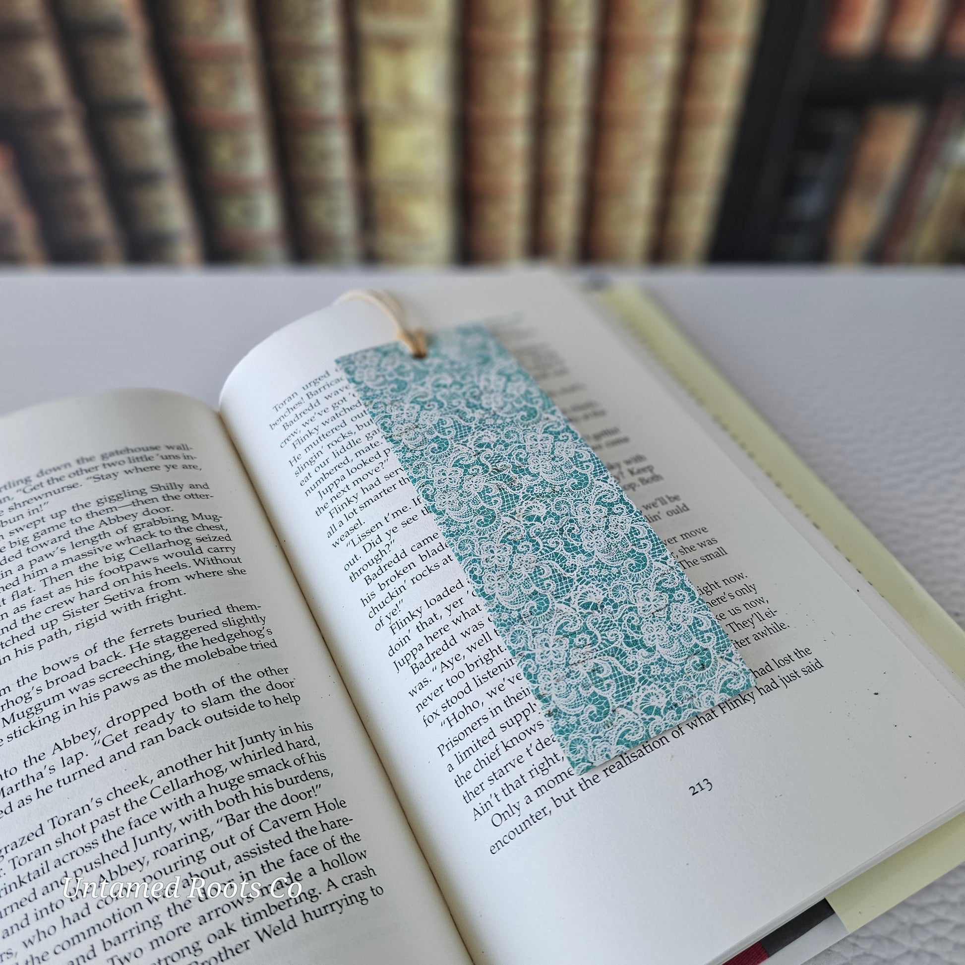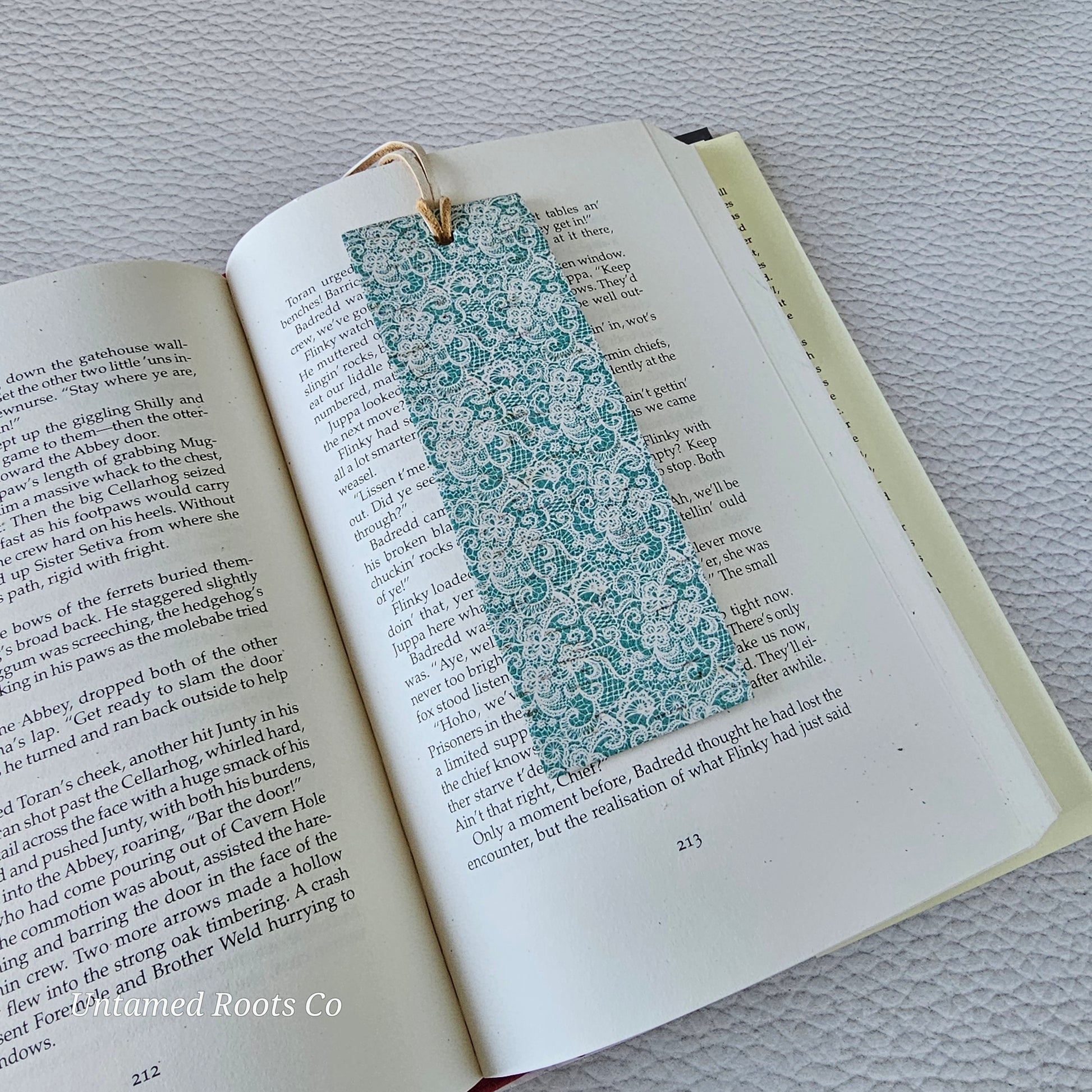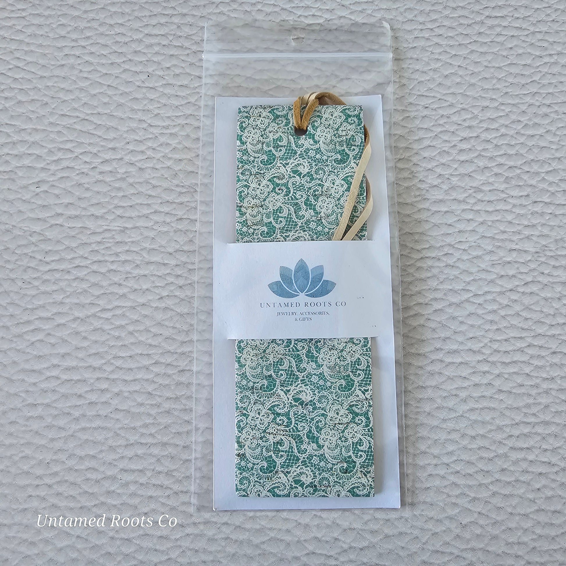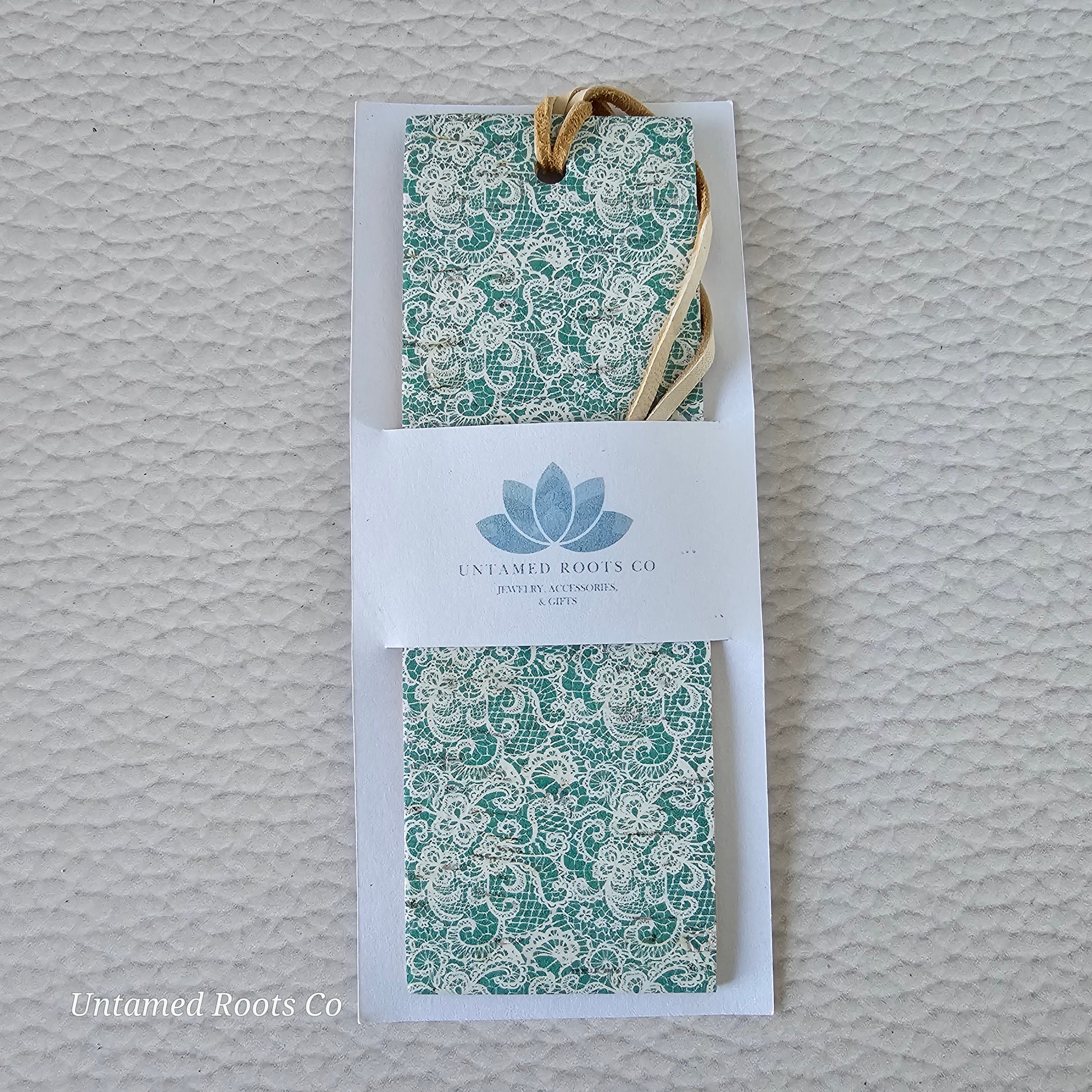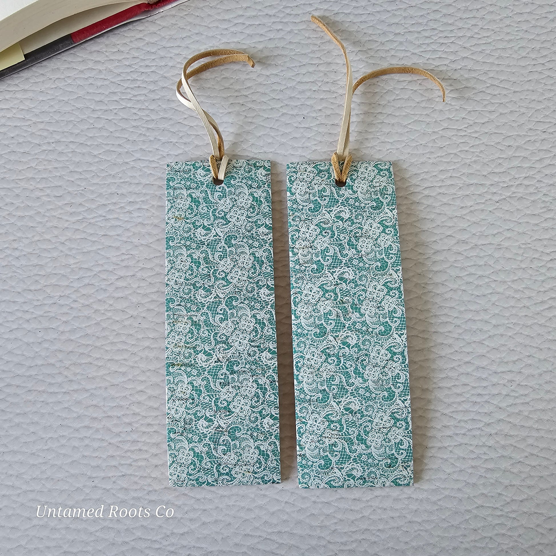 Teal Lace Leather Bookmark